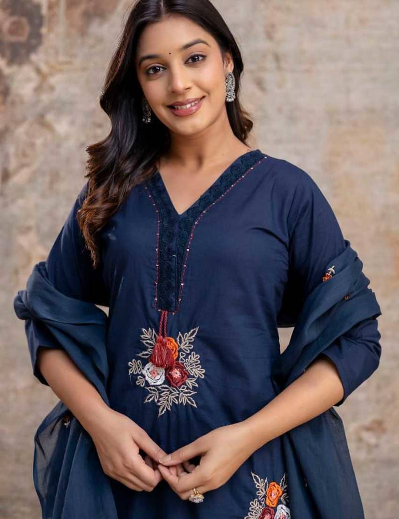 | Product Name | Blue Cotton Embroidered Kurta Set | |
