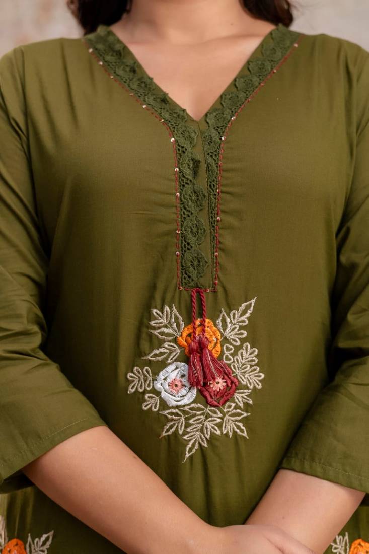 | Product Name | Taj Cotton Straight Kurti Pant Dupatta Set | |