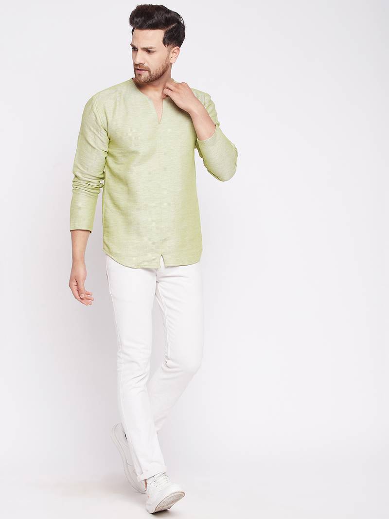 Green plain cotton men-kurtas