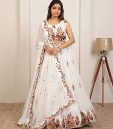 White embroidery work georgette fabric party wear lehenga choli with dupatta.
