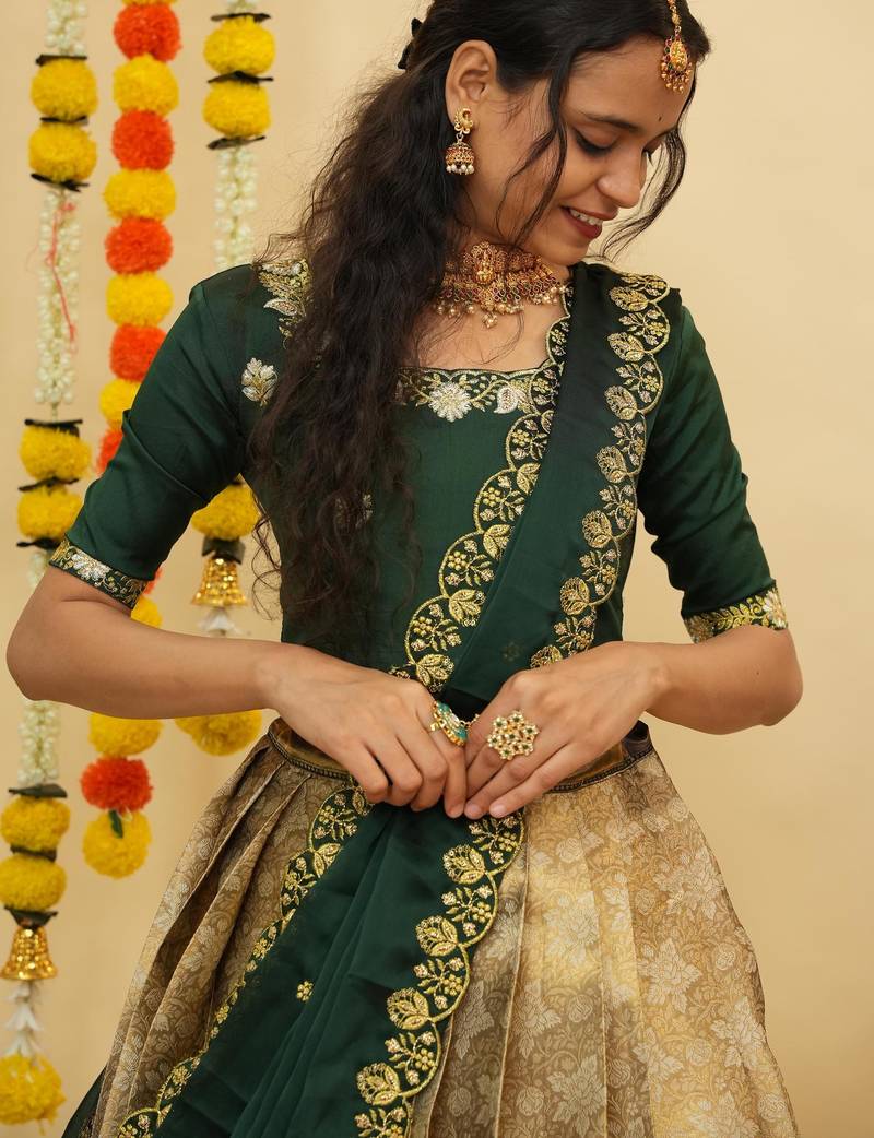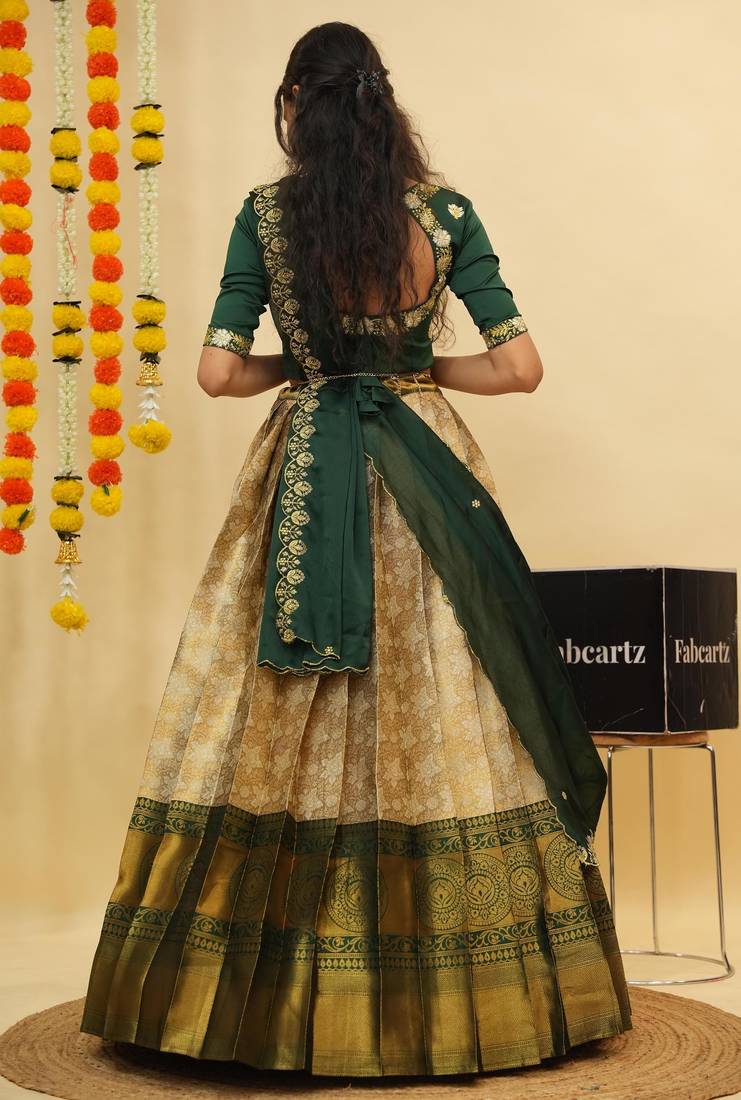 Beautiful south indian style semi-stitched half saree with blouse and dupatta for women