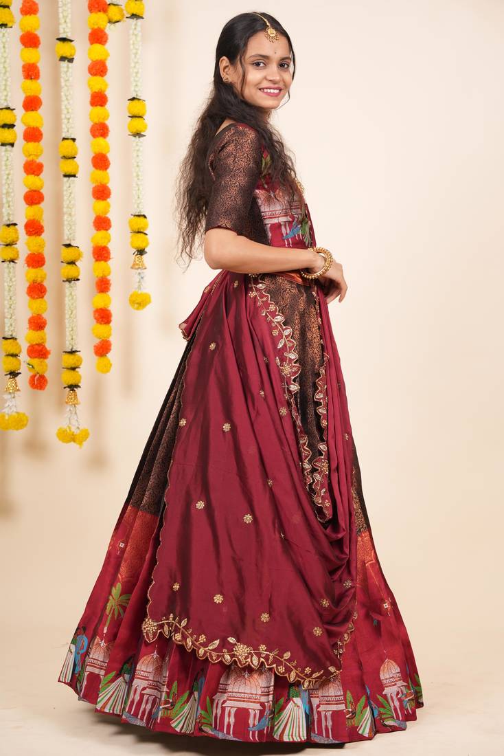 | Product Description | "Fabric: Lehenga Fabric : Lichi Silk Zari Work Choli Fabric: Lichi Silk Zari Work Dupatta Fabric: Rangoli Silk Pattern: Lehenga: Woven Design Blouse: Woven Design Stitch Type Lehenga Is Semi Stitched Choli Is Unstitched Length : Lehenga Length 42 Inch (Semi Stitched) Lehenga Waist Size – Upto 40 Inch Lehenga Flair 3.6 M Blouse 1 M Dupatta 2.40 M Ready To Ship." |