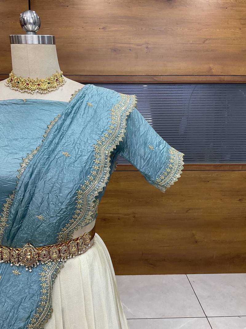 | Product Description | "Fabric: Lehenga Fabric : Pure Viscose Shimmer Choli Fabric: Gold Crushed Dupatta Fabric: Gold Curshe Pattern: Lehenga: Embroidery Work Blouse: Embroidery Work Stitch Type Lehenga Is Semi Stitched Choli Is Unstitched Length : Lehenga Length 42 Inch (Semi Stitched) Lehenga Waist Size – Upto 40 Inch Lehenga Flair 3.5 M Blouse 1 M Dupatta 2.40 M Ready To Ship." |