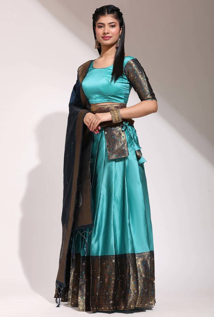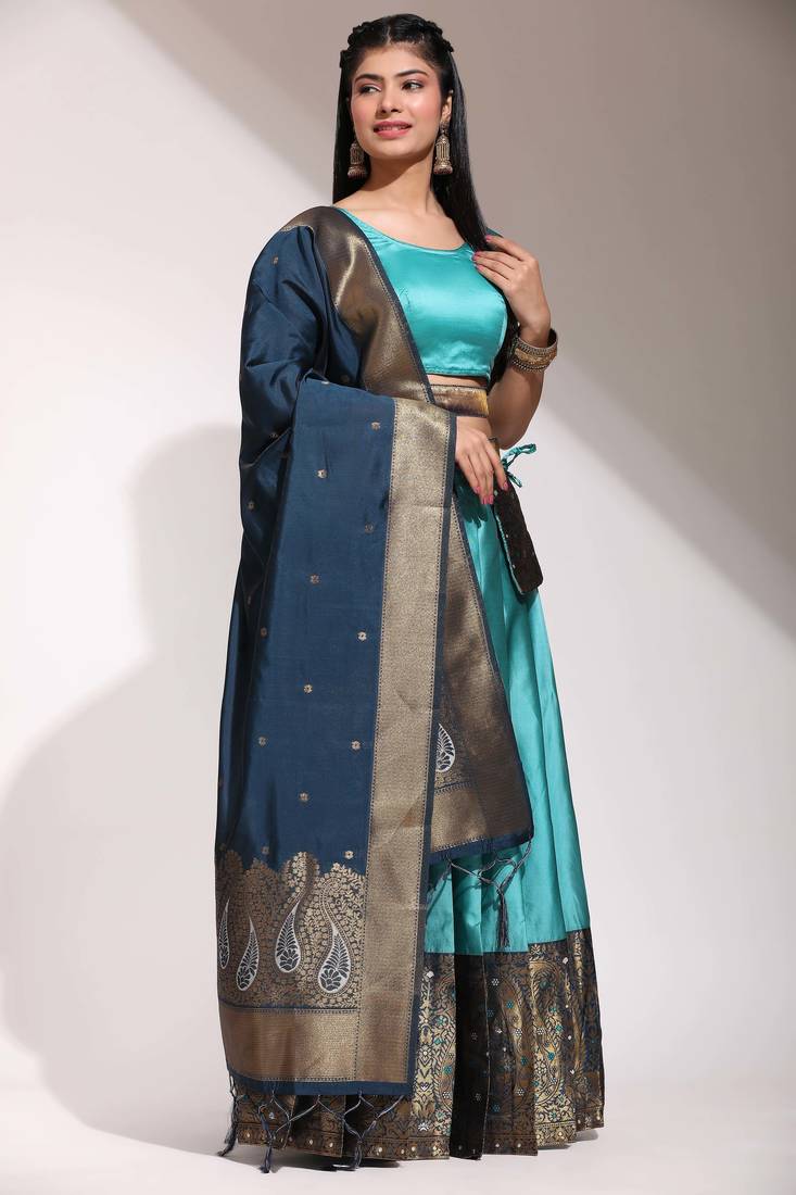 | Product Description | "Fabric: Lehenga Fabric : Lichi Silk Zari Work Choli Fabric: Lichi Silk Zari Work Dupatta Fabric: Lichi Silk Zari Work Pattern: Lehenga: Solid With Woven Blouse: Solid With Woven Stitch Type Lehenga Is Semi Stitched Choli Is Unstitched Length : Lehenga Length 42 Inch (Semi Stitched) Lehenga Waist Size – Upto 40 Inch Lehenga Flair 3.6 M Blouse 1 M Dupatta 2.40 M Ready To Ship." |