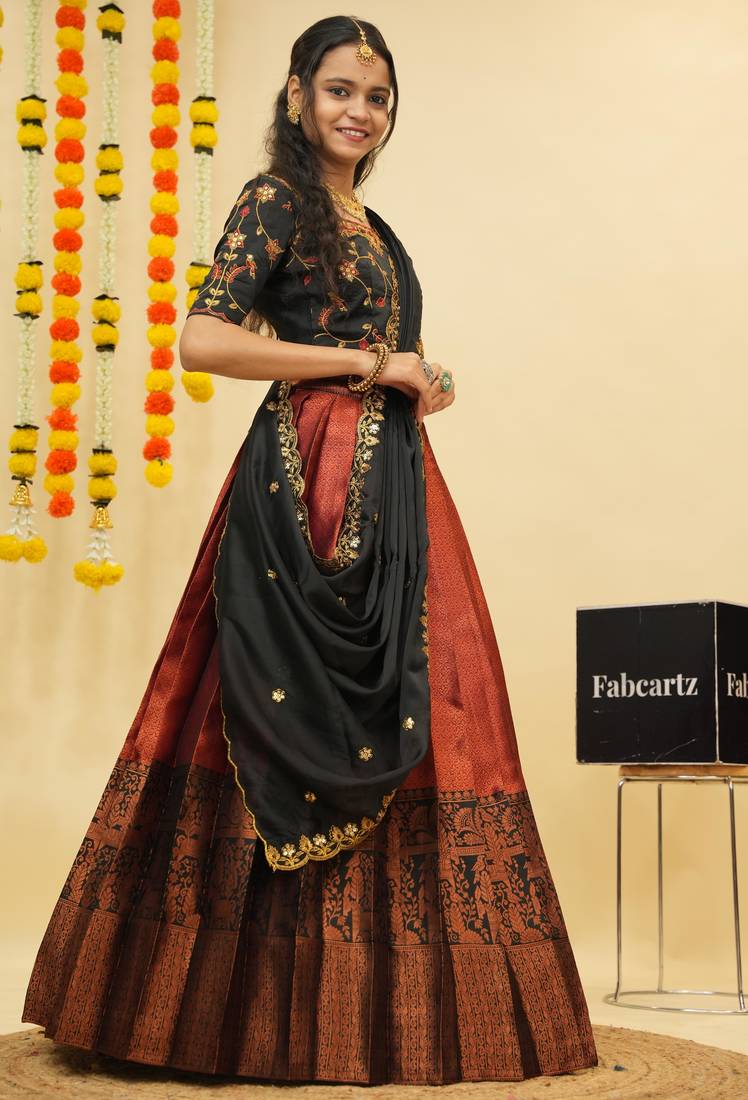 | Product Description | "Fabric: Lehenga Fabric : Lichi Silk Zari Work Choli Fabric: Taffeta Dupatta Fabric: Rangoli Silk Pattern: Lehenga: Solid With Woven Blouse: Embroidery Work Stitch Type Lehenga Is Semi Stitched Choli Is Unstitched Length : Lehenga Length 42 Inch (Semi Stitched) Lehenga Waist Size – Upto 40 Inch Lehenga Flair 3.6 M Blouse 1 M Dupatta 2.40 M Ready To Ship." |