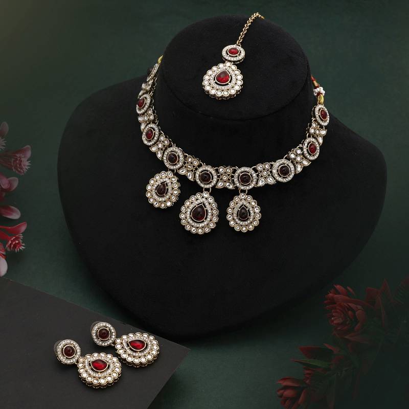 Package details : 1 Piece Of Necklace/1 Pair Of Earrings/1 Piece Of Maang Tikka