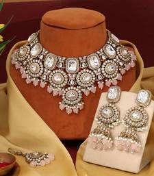 Product Description | Adjustable Rope | Necklace Length: 20.00 Cm X Width: 8.50 Cm | Earring Length: 9.00 Cm X Width: 3.00 Cm | Maang Tikka Length: 8.00 Cm X Width: 3.20 Cm | Metal: Alloy With Good Quality Mehandi Gold Plated | Color: Pink | Stone: Kundan & Imitation Pearl | Gross Weight: 195.00 Grams | Package Content: 1 Piece Of Necklace/1 Pair Of Earring/1 Piece Of Maang Tikka | Back Finding: Post With Friction Back X Earring Style: Jhumka |