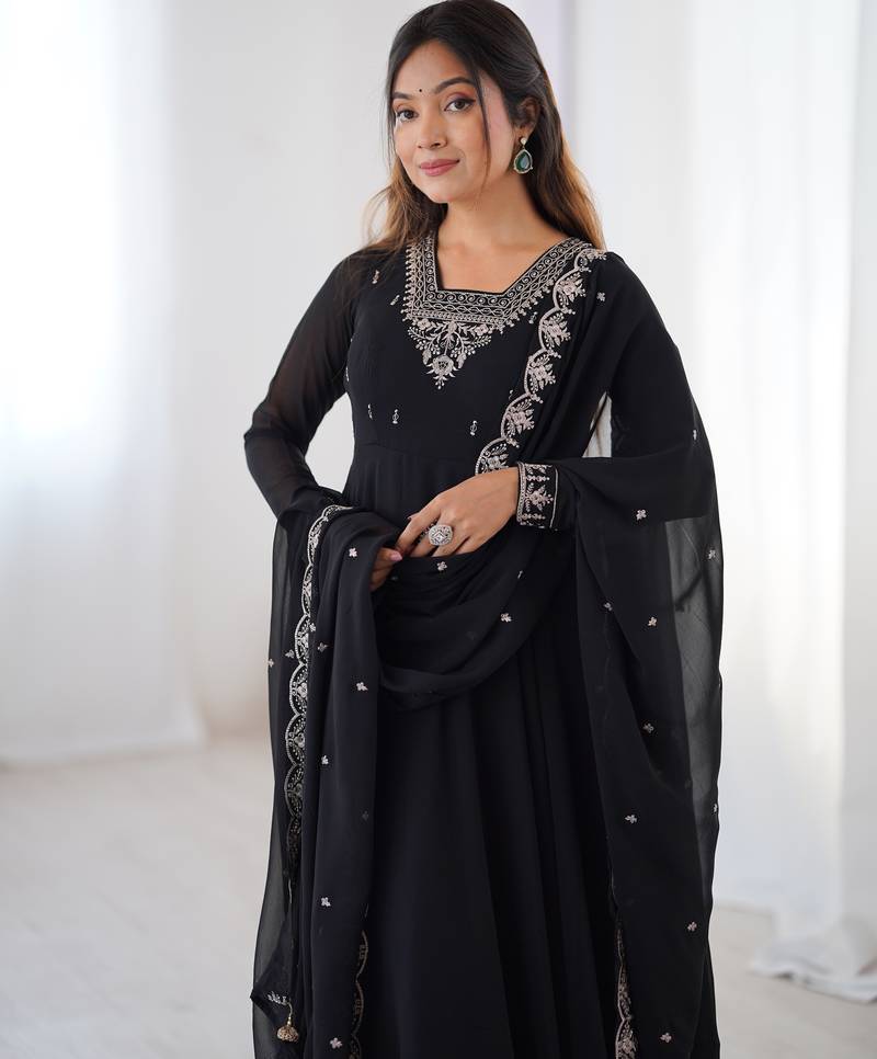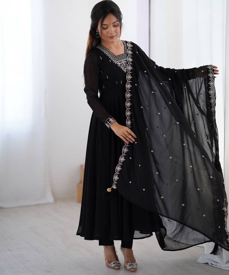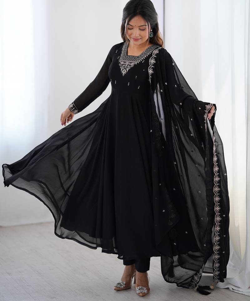 | Product Name | Faux Georgette Embroidery Work Black Readymade Salwar Suit | |