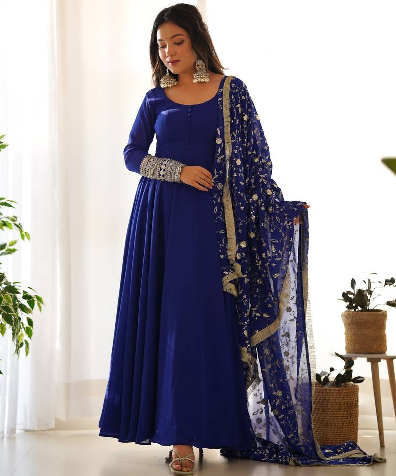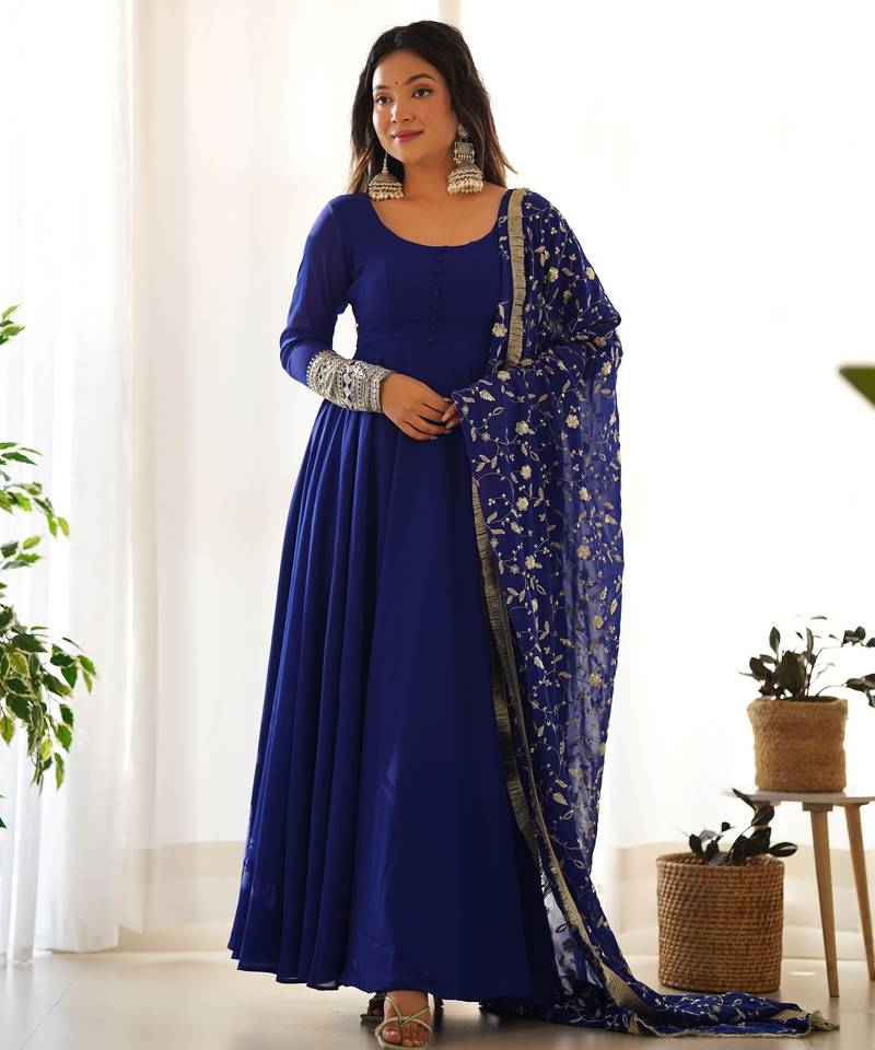 | Product Description | Fabric: Heavy Foux Georgette, Work: Embroidery Sequence And Zari Work, Pant Fabric: Micro Cotton, Dupatta: Foux Georgette |