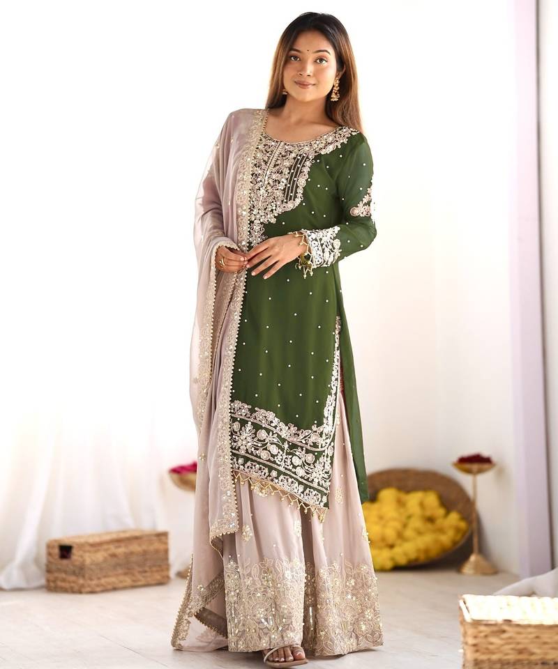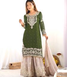 Heavy fuax georgette embroidery and sequence work green readymade salwar suit stitched