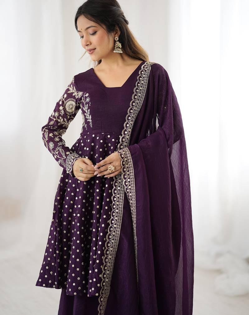 | Product Name | Pure Silk Embroidery Wine Readymade Salwar Suit | |