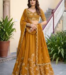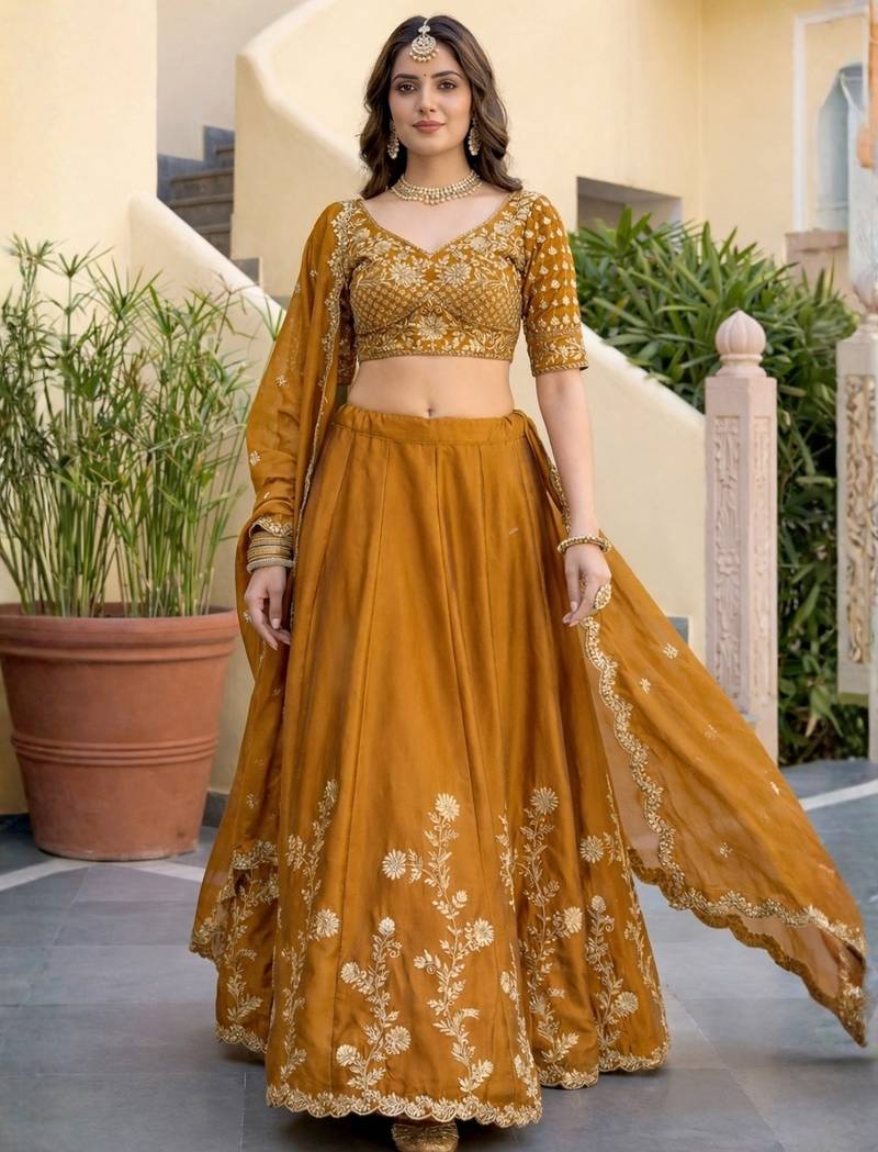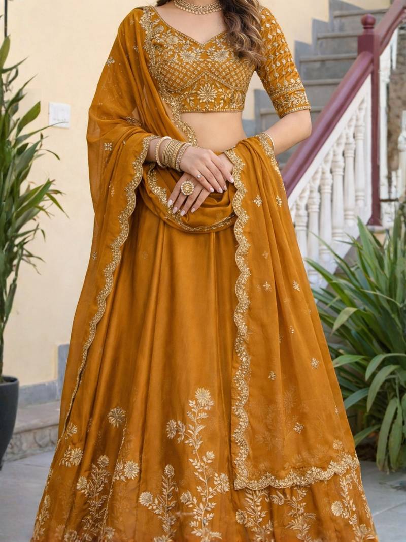 Mustard embroidered designer lehenga choli with dupatta