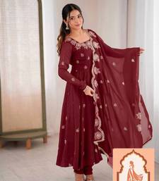 | Product Description | Stunning Maroon Anarkali Set With Intricate Gold Embroidery & Sequence Work 💃. Perfect For Weddings, Festivals, Or Special Occasions 🇮🇳! Includes Fully Stitched Gown, Bottom, & Dupatta. |