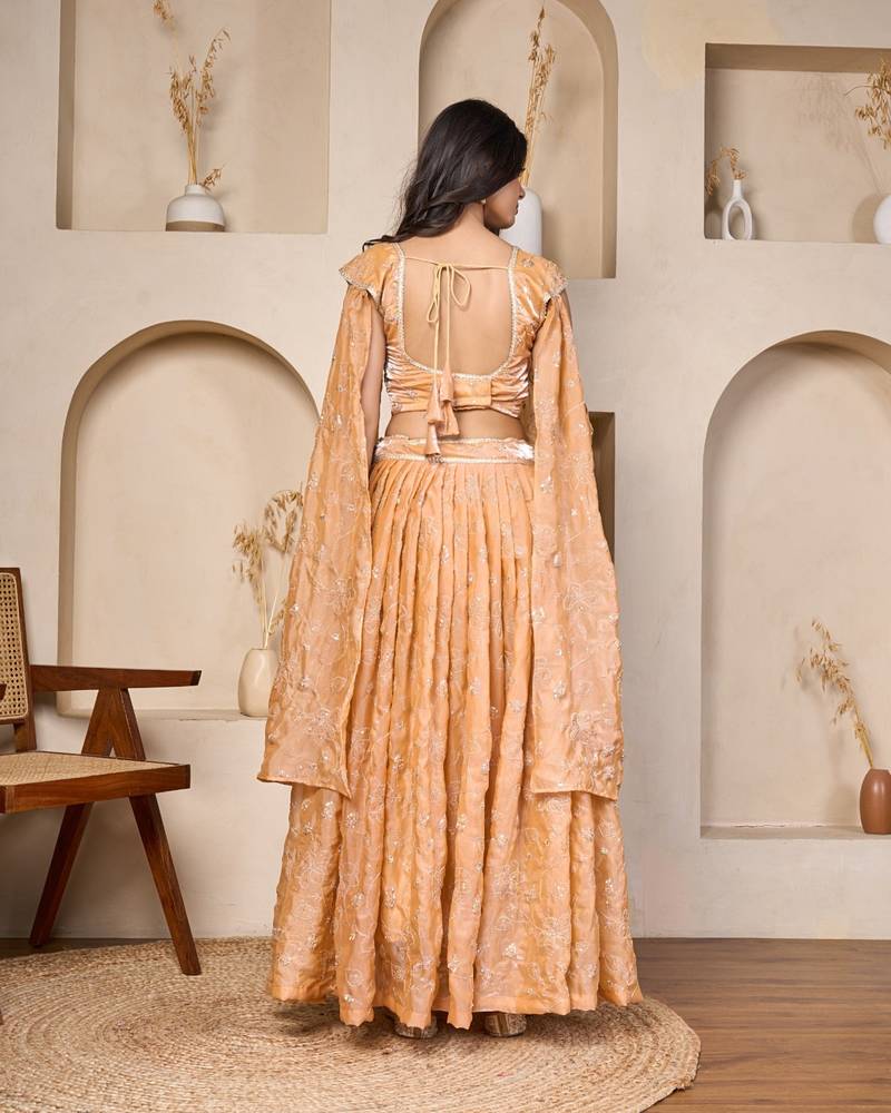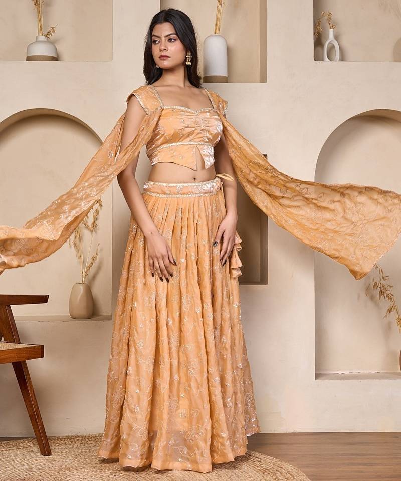 | Product Name | Cream Embroidered Organza Lehenga Set With Split Sleeve Dupatta | |