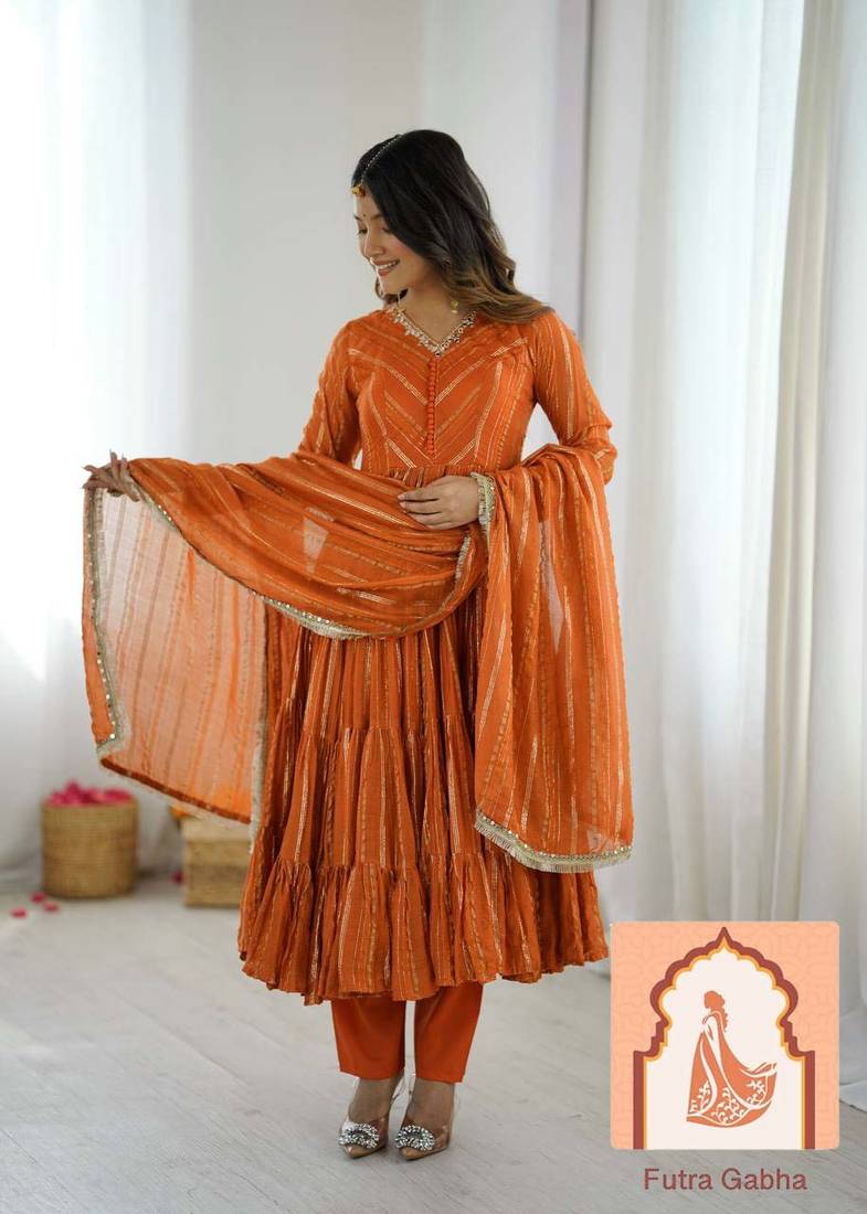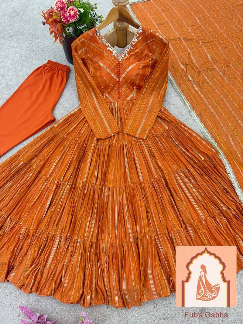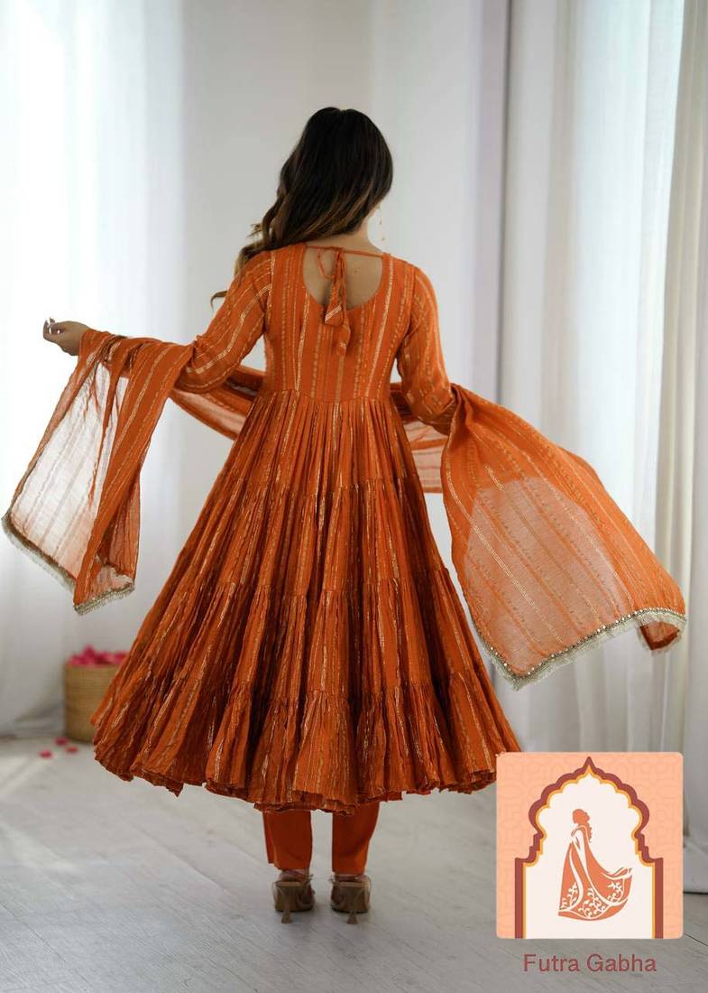 Stunning Orange Ruffle Gown Perfect For Weddings, Festivals, Or Special Occasions. Fully Stitched And Ready To Wear.