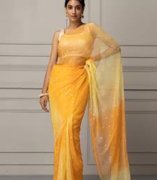 Yellow shaded hand embroidered chiffon saree