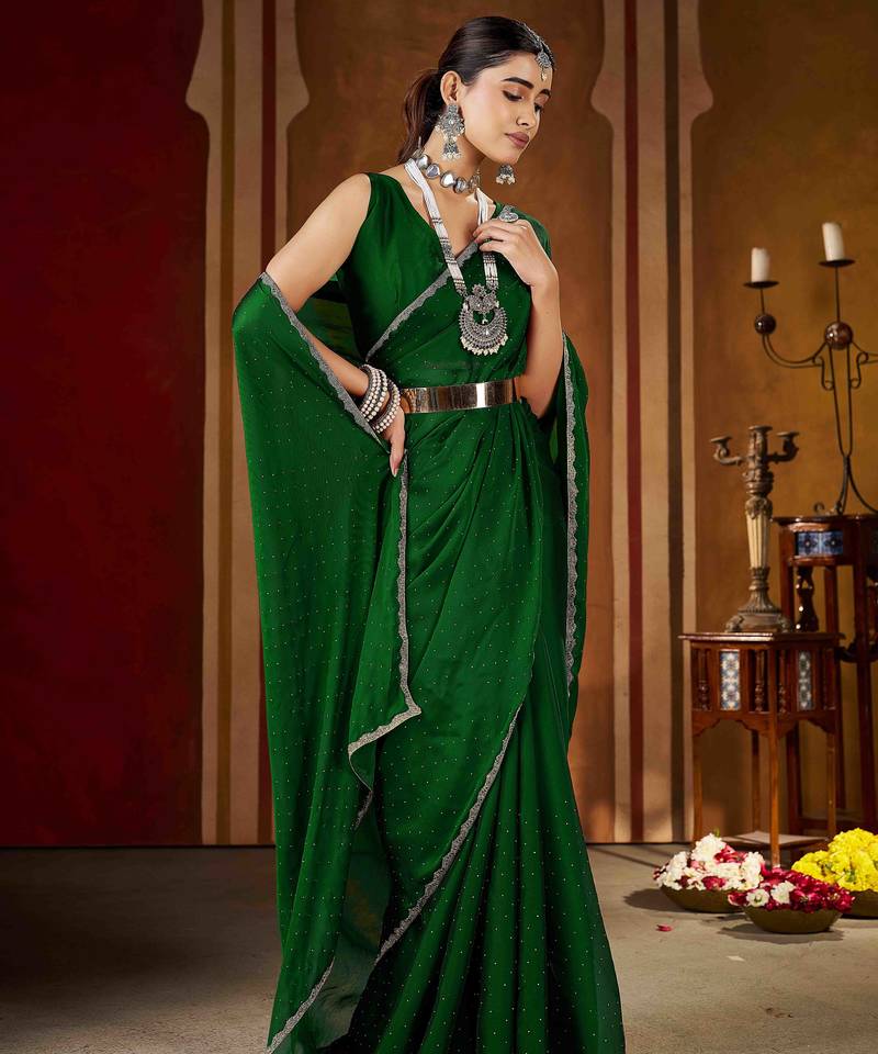 | • | Saree | : | Color- Green / Fabric- Art Silk |