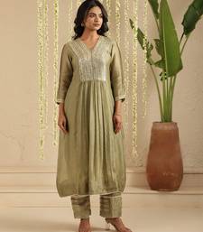 Green hand woven chanderi kurta set