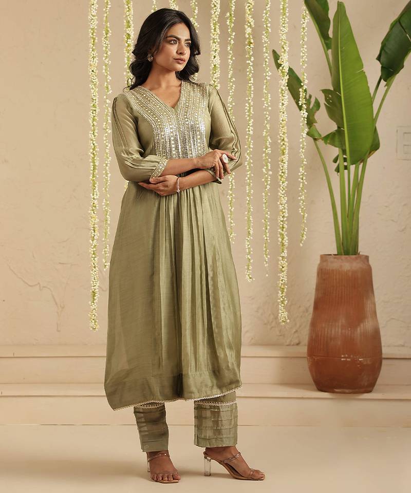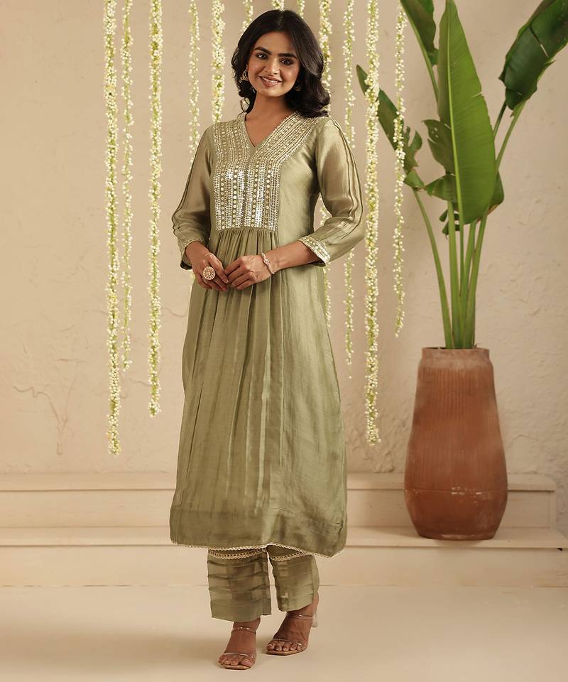 | Product Name | Green Hand Woven Chanderi Kurta Set | |