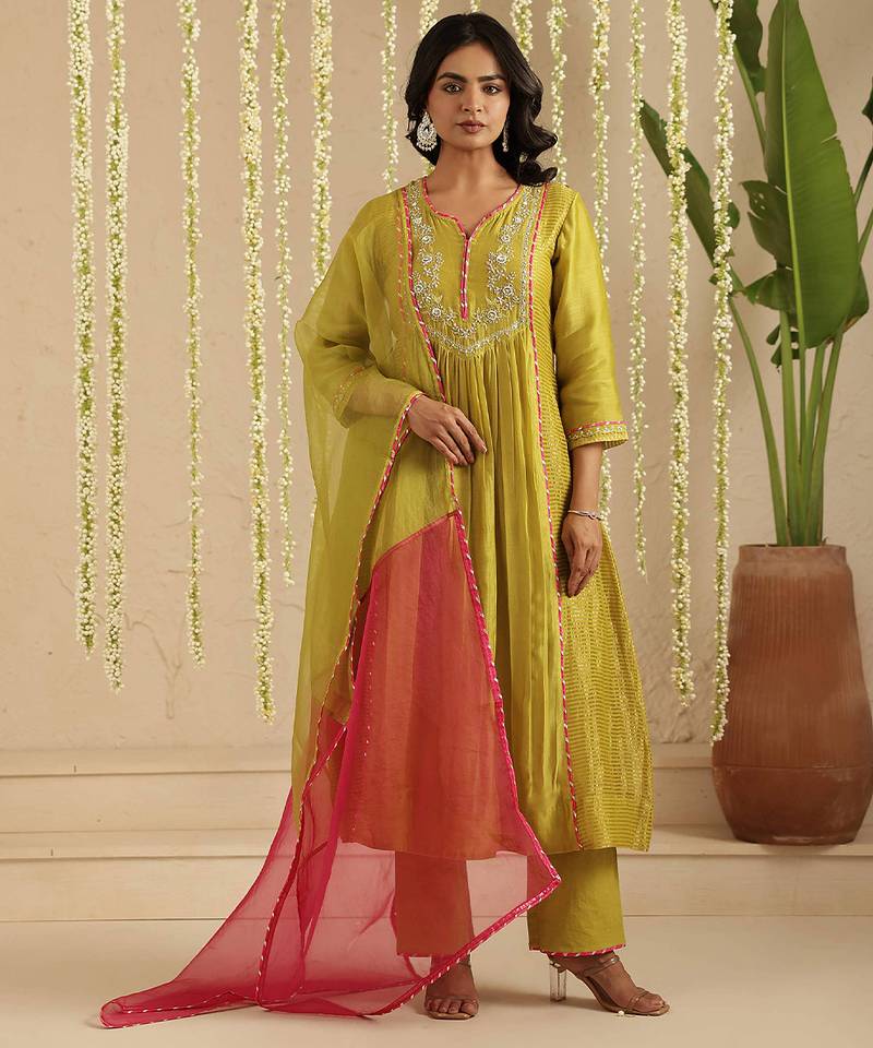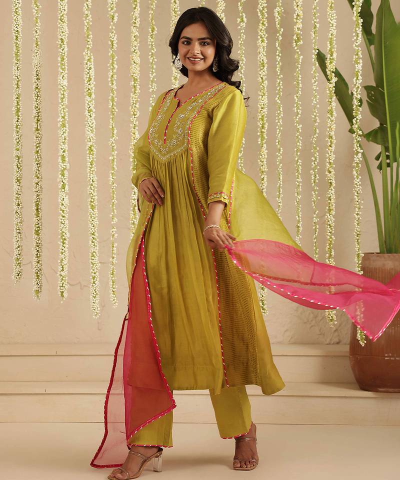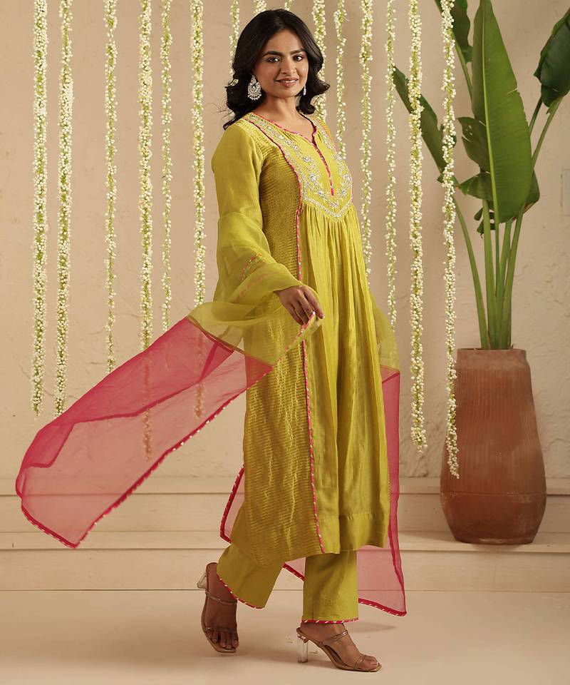 | Product Name | Mehendi Green Hand Woven Chanderi Kurta Set | |
