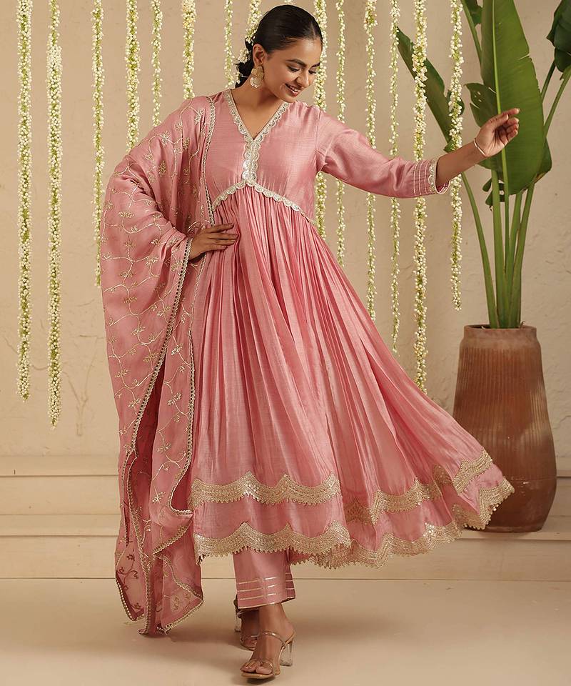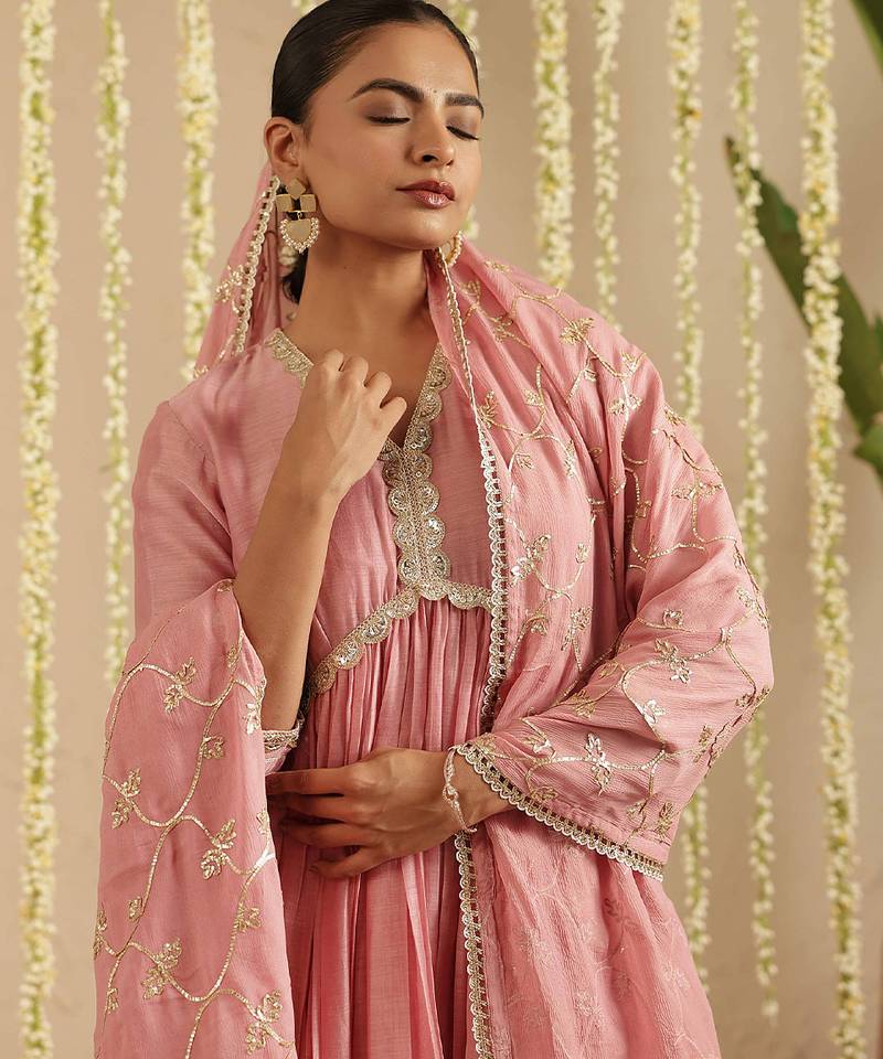 | Product Description | We Have A Soft Corner For Heavy Dupattas And Subdued Colours. This Set Has Both !! The Anarkali Is In Handloom Chanderi With Cotton Pants. The Dupatta In Chiffon Is Heavily Embroidered.