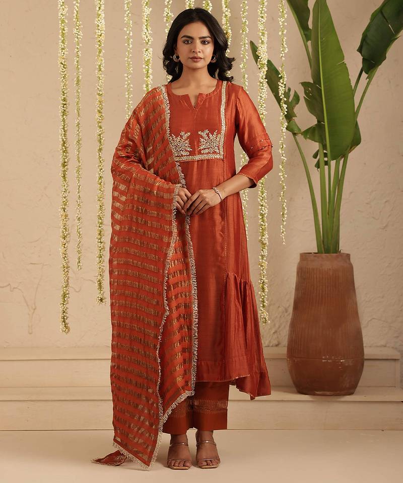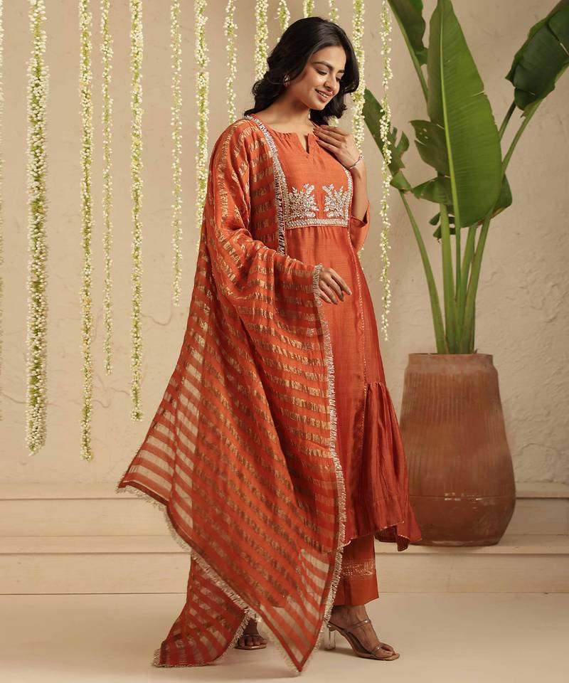 | Product Name | Rust Hand Woven Chanderi Kurta Set | |