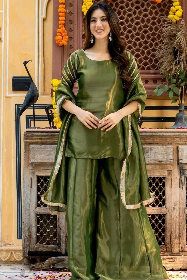 | Product Name | Green Tissue Lace Work Kurta And Plazoo And Dupata | |