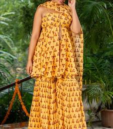 Yellow organza printed kurta and sharara and dupatta
