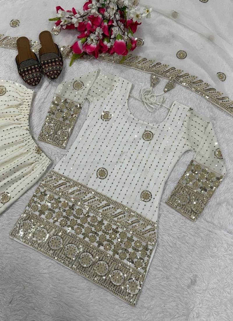 Product Name Premium White Designer Sharara Set With Heavy Golden Work
