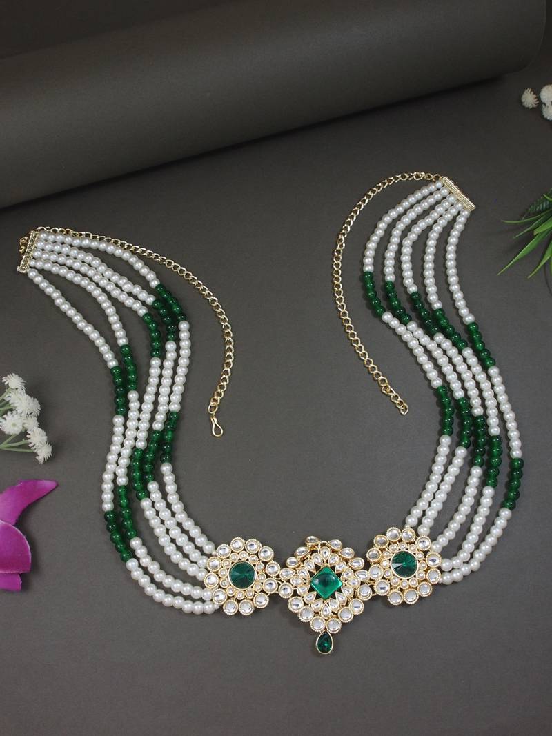 18k gold plated traditional ethnic kundan and stone studded adjustable pearl kamarband::Belly chain