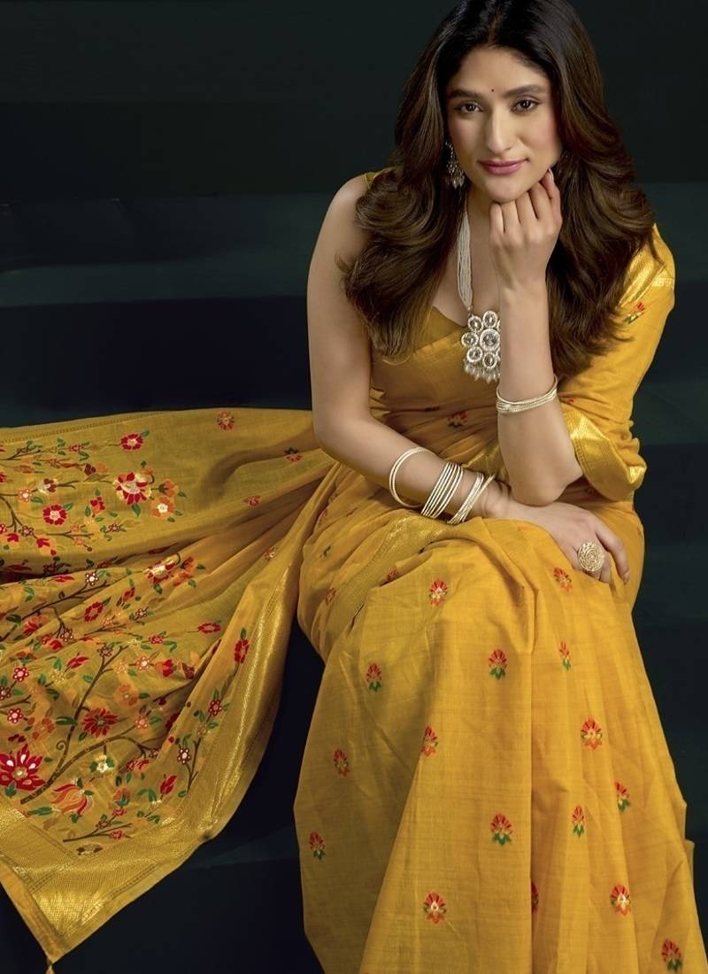 Product Name Yellow Munga Cotton Mina Work Sarees