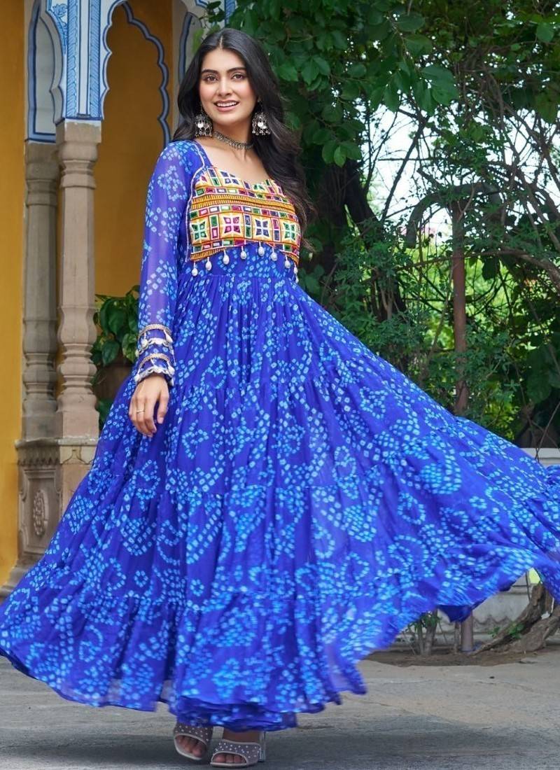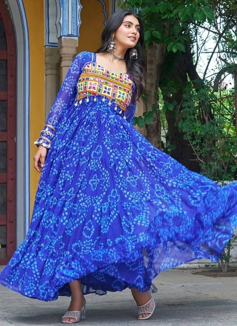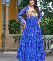 | Product Name | Blue Faux Georgette Kutchi Patchwork Semi Stitched Gown For Women | Traditional Festival Wear Gown | |