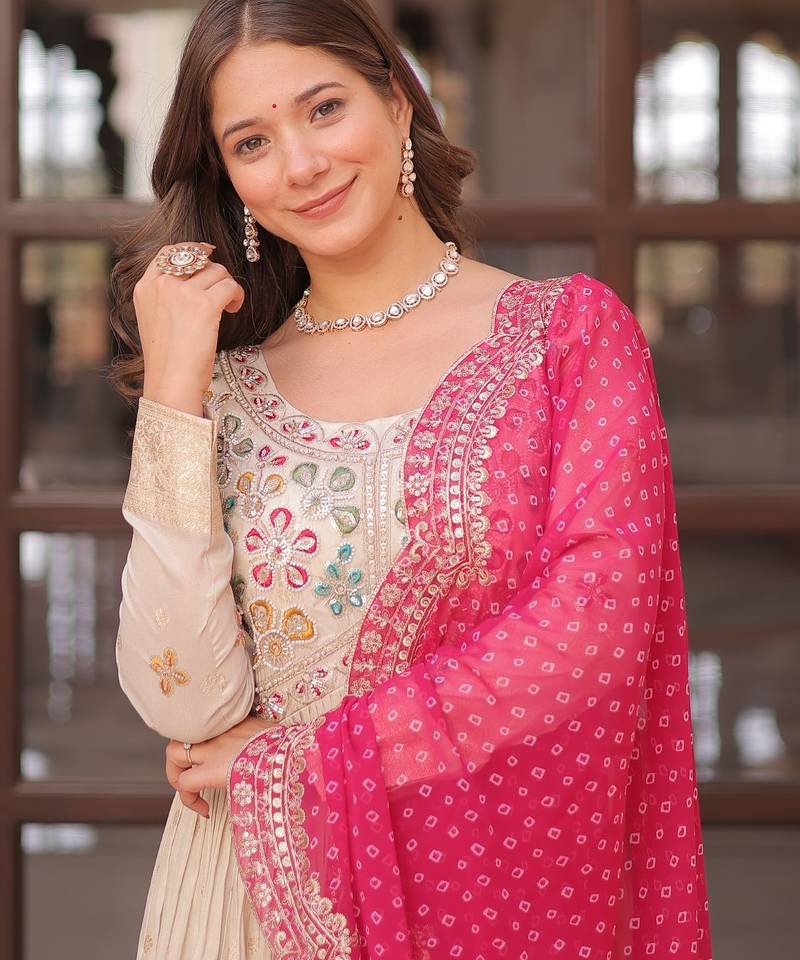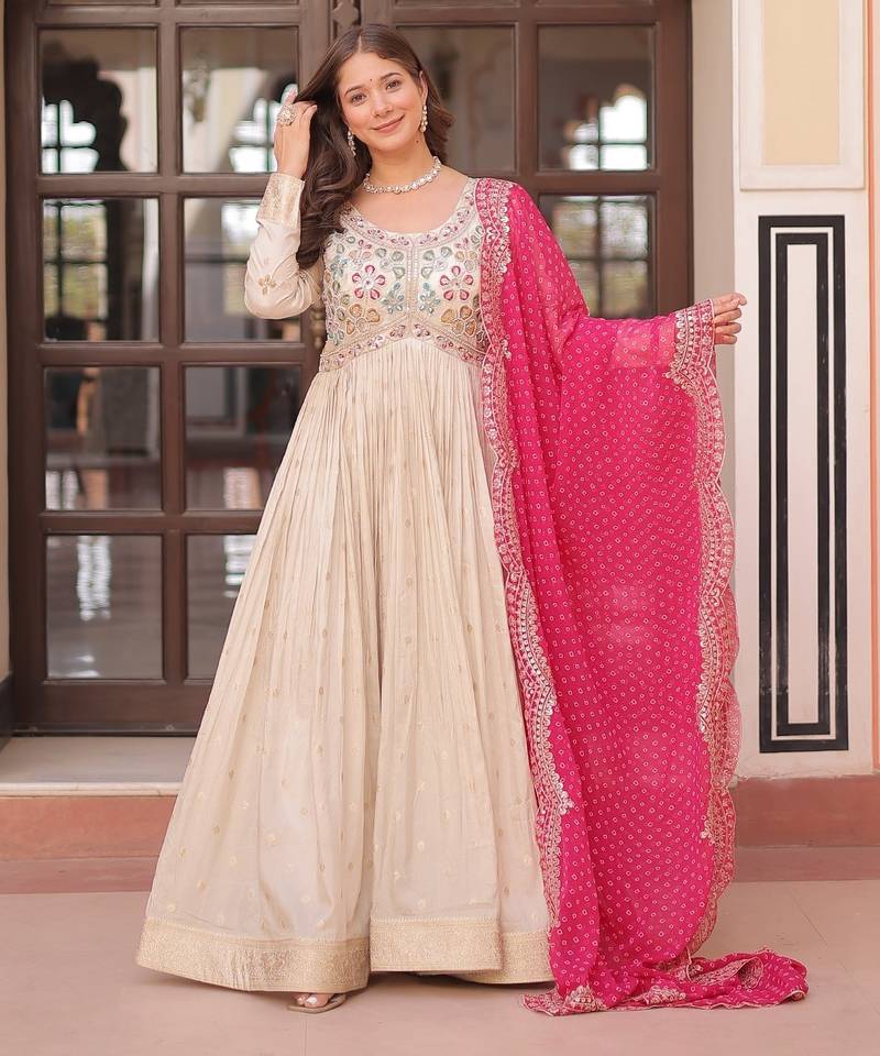 | Product Description | Experience Luxury And Sophistication With This Beautifully Crafted Pink Cosmos Weaving Embroidered Gown, Paired With A Graceful Georgette Dupatta. The Rich Weave Of The Gown Fabric Gives It A Premium Texture, While The Elegant Embroidery And Cut Work Detailing Add A Striking Designer Touch. Perfect For Festive Occasions, Weddings, Parties, And Special Celebrations, This Fully Stitched Gown Offers A Flattering Silhouette With Exceptional Comfort. The Vibrant Pink Shade Enhances The Overall Charm, Making It A Standout Piece In Your Wardrobe. |