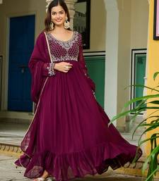 | Product Name | Faux Blooming Lace Border Embroidered Party Wear Gown With Matching Dupatta | Wine Color | Look | |