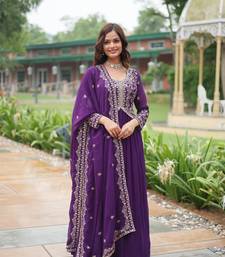 | Product Description | Elegant, Royal And Irresistibly Stylish—This Purple Gown Brings A Luxurious Charm Perfect For Festive And Party Wear. Crafted From Premium Faux Blooming Fabric, It Offers A Smooth, Soft Drape With A Comfortable Feel That Enhances The Overall Look. The Gown Is Beautifully Adorned With Heavy Embroidery And Multi Sequins Work, Giving It A Sparkling Festive Vibe While Keeping The Design Classy. With A Stitched, Ready To Wear Silhouette And A 56 Inch Length, It Delivers An Effortlessly Graceful Appeal. The Matching Sequins Embroidered Dupatta Completes The Premium Look, Making It A Standout Piece For Any Special Celebration. |