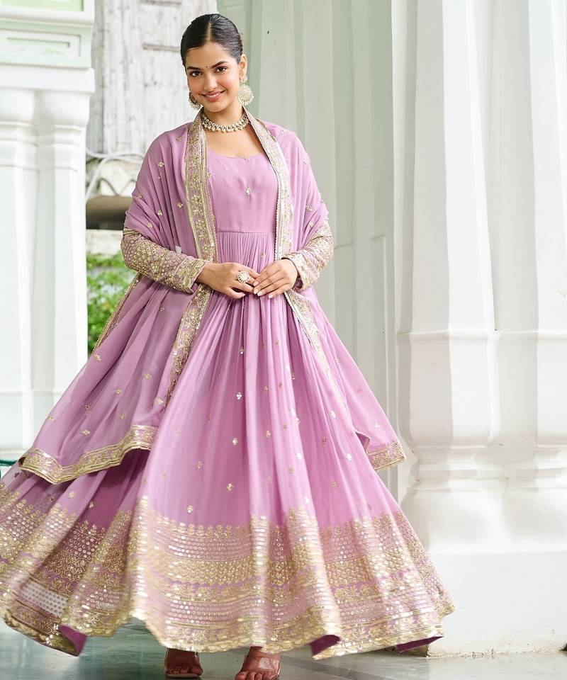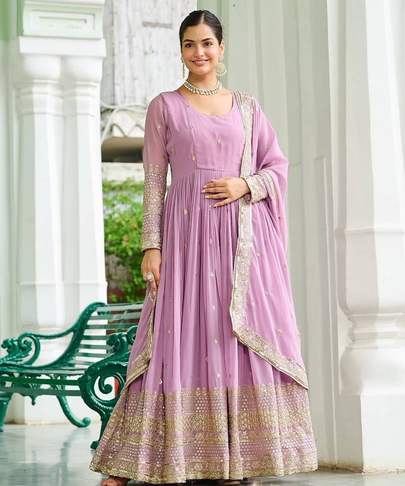 | Product Description | Presenting A Stunning Lavender Faux Georgette Embroidered Gown Crafted For Elegance And Luxury. The Soft Georgette Drape, Paired With Shimmering Sequins Multi Embroidered Work, Creates A Glamorous Festive Ready Silhouette. Designed For Comfort With Flawless Finishing, This Stitched Gown Offers A Graceful Fall And Premium Appeal. Perfect For Weddings, Receptions, Parties, Festive Occasions, Or Evening Events—This Outfit Ensures You Stand Out With Effortless Charm. |