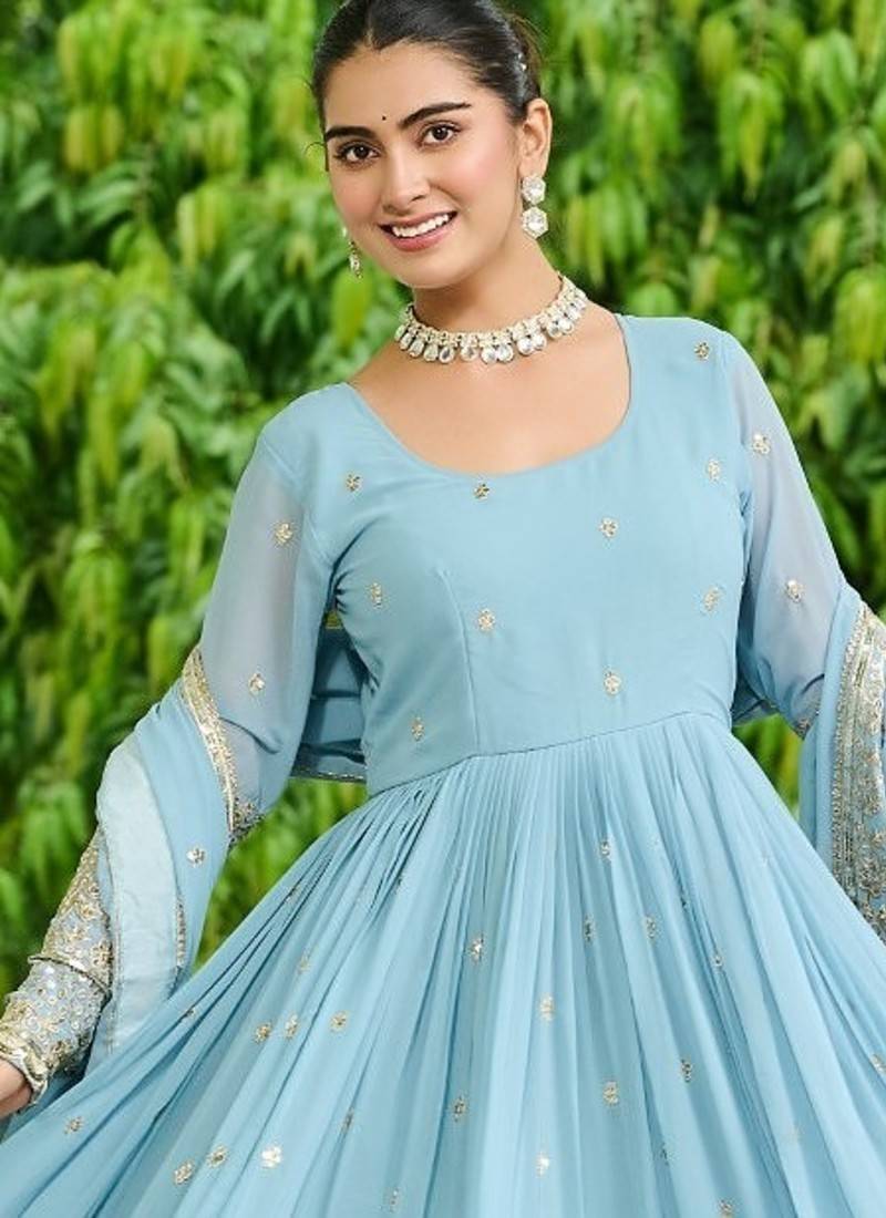 | Product Name | Faux Georgette Sequins Embroidered Party Wear Designer Gown With Matching Dupatta | Sky Blue | Look | |