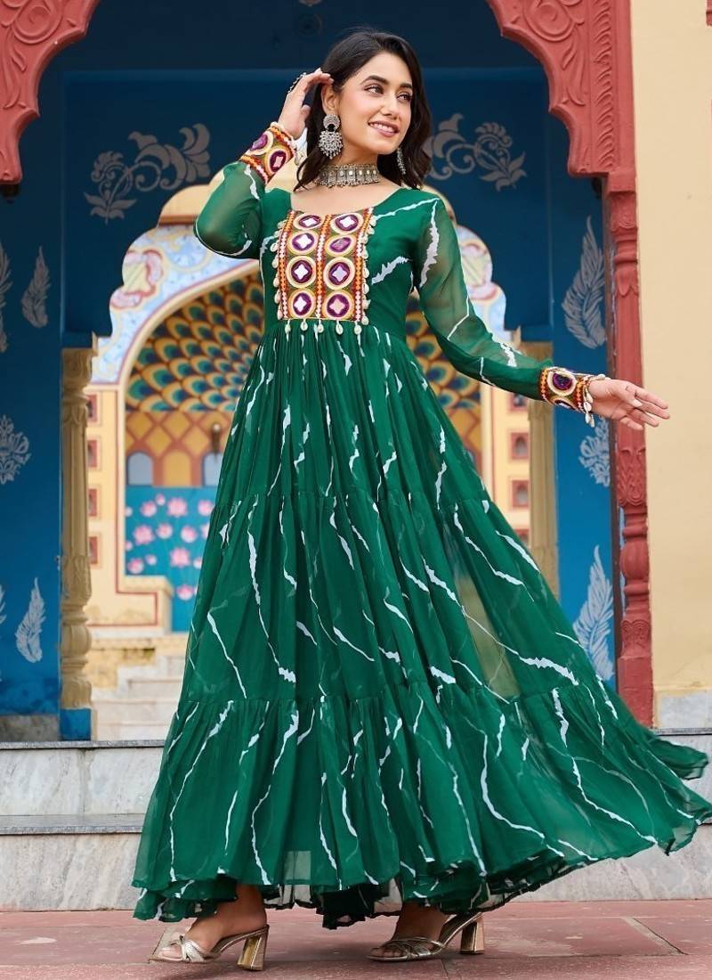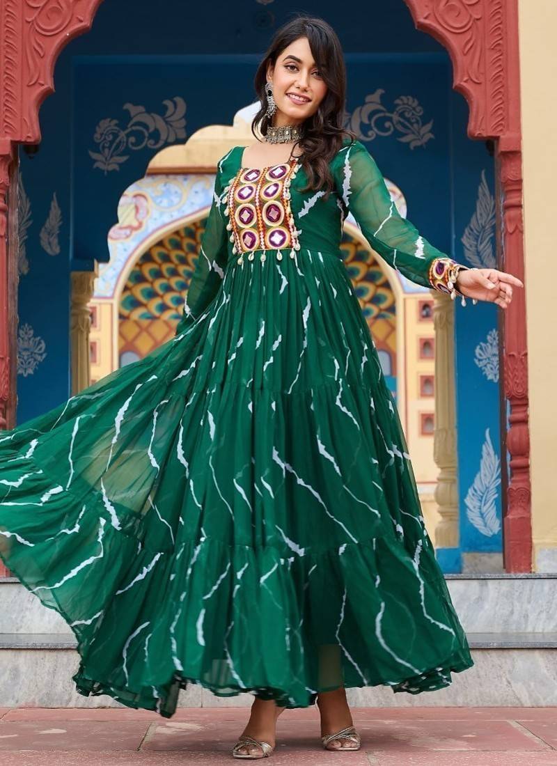| Product Name | Green Faux Georgette Kutchi Patchwork Gown For Women | Semi Stitched Traditional & Festive Wear Gown | |