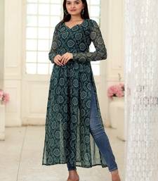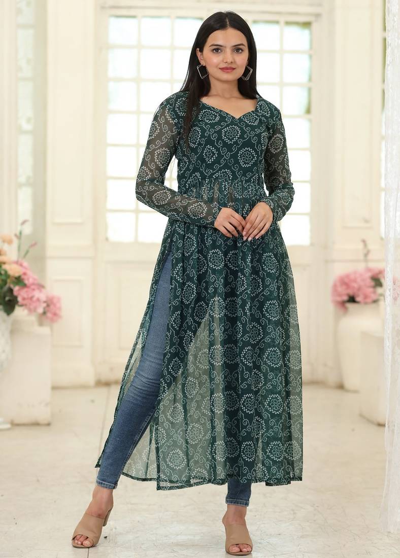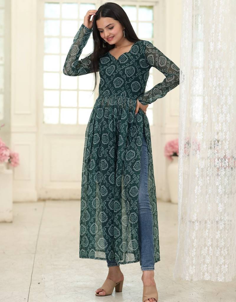 Green fox georgette printed kurta – elegant & lightweight daily wear stitched