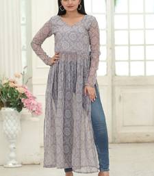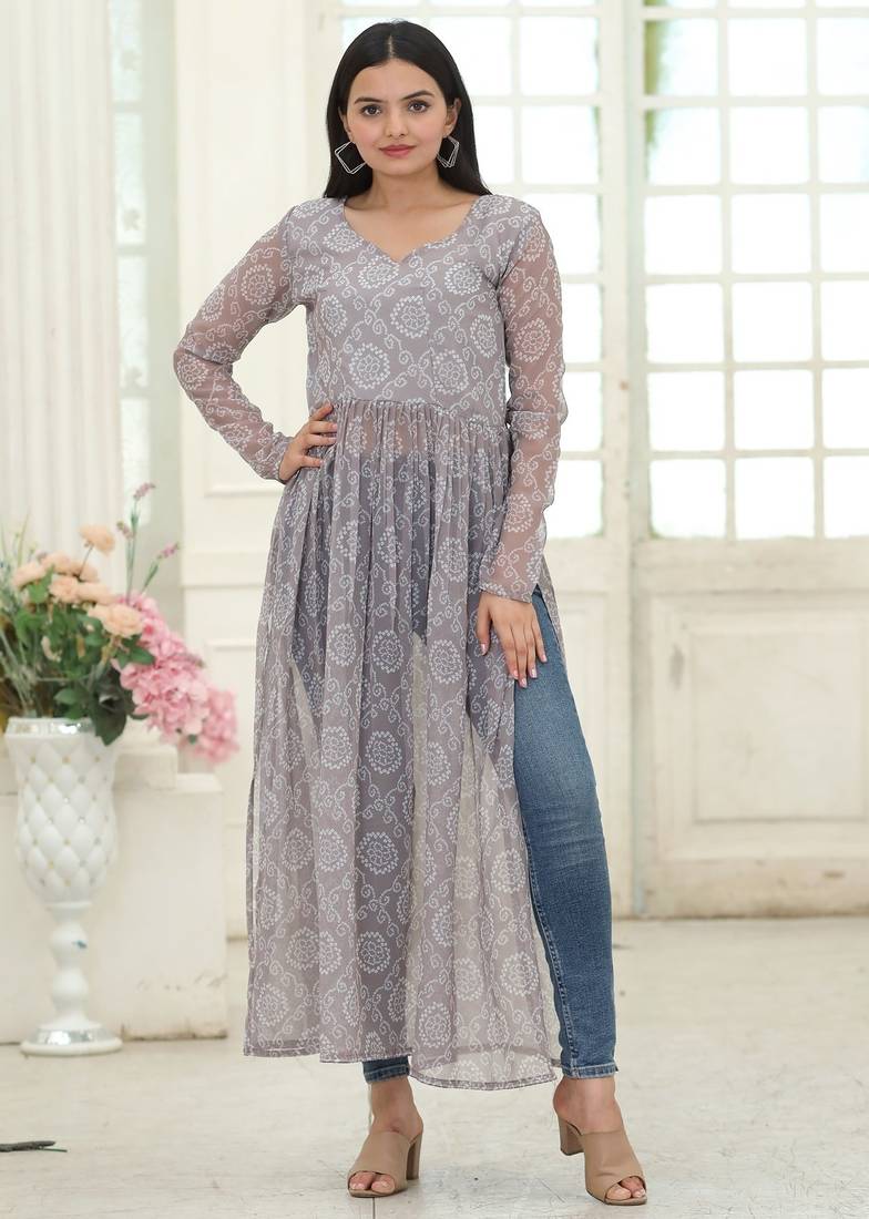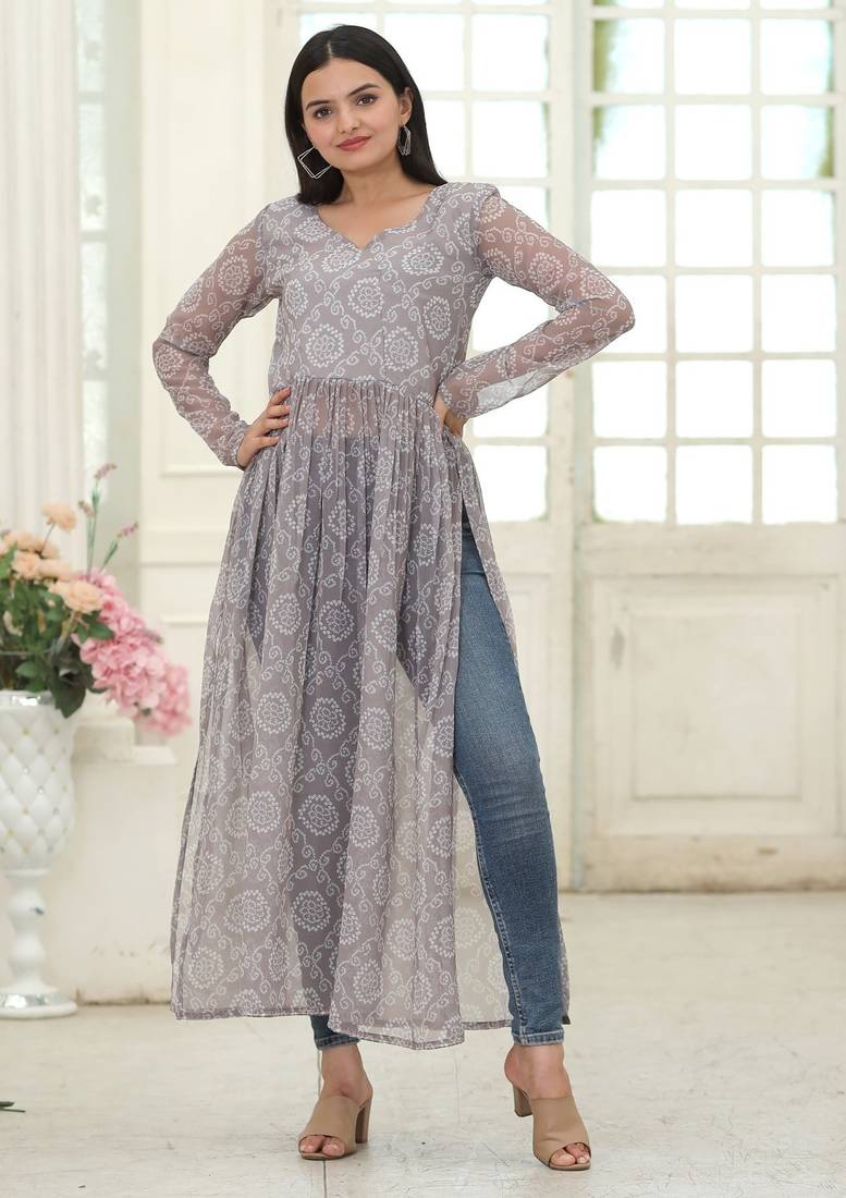 Grey fox georgette printed kurta – lightweight & elegant everyday wear stitched
