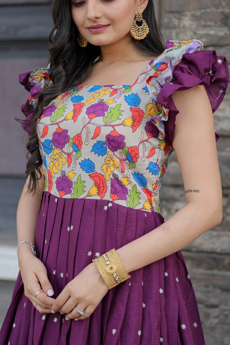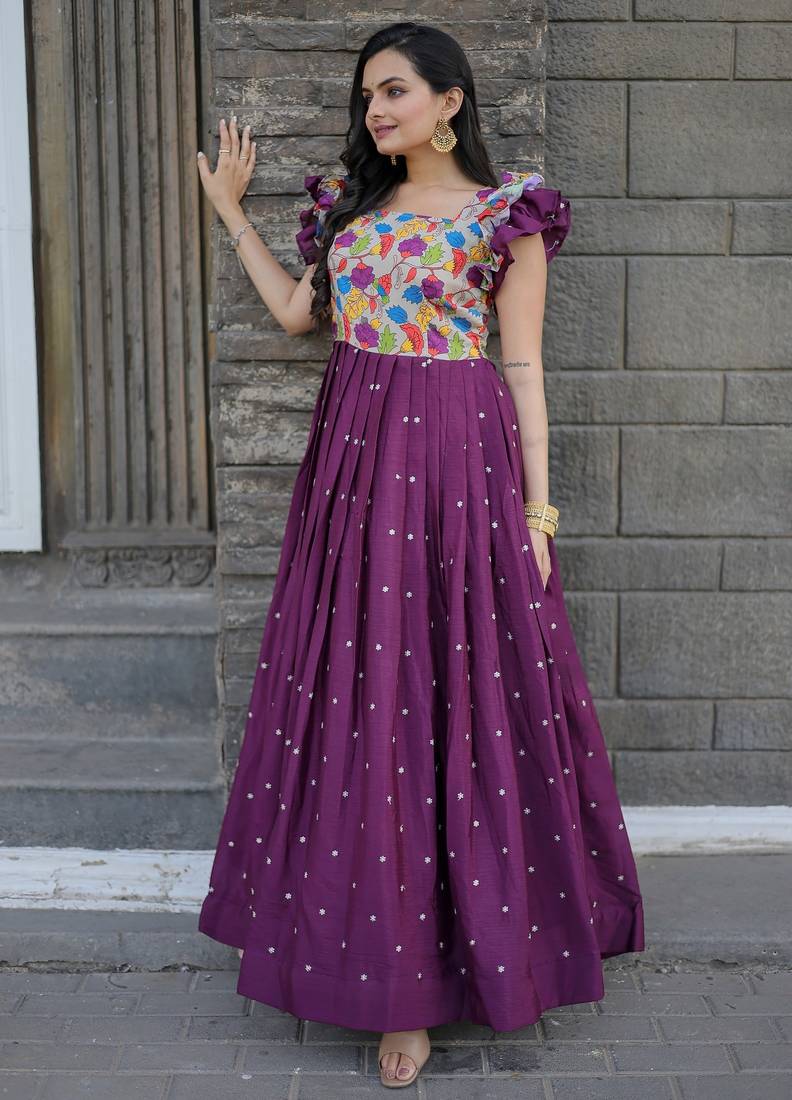 | Product Name | Maslin Embroidered Readymade Gown Wine | 56" Length | Festive & Occasion Wear | |