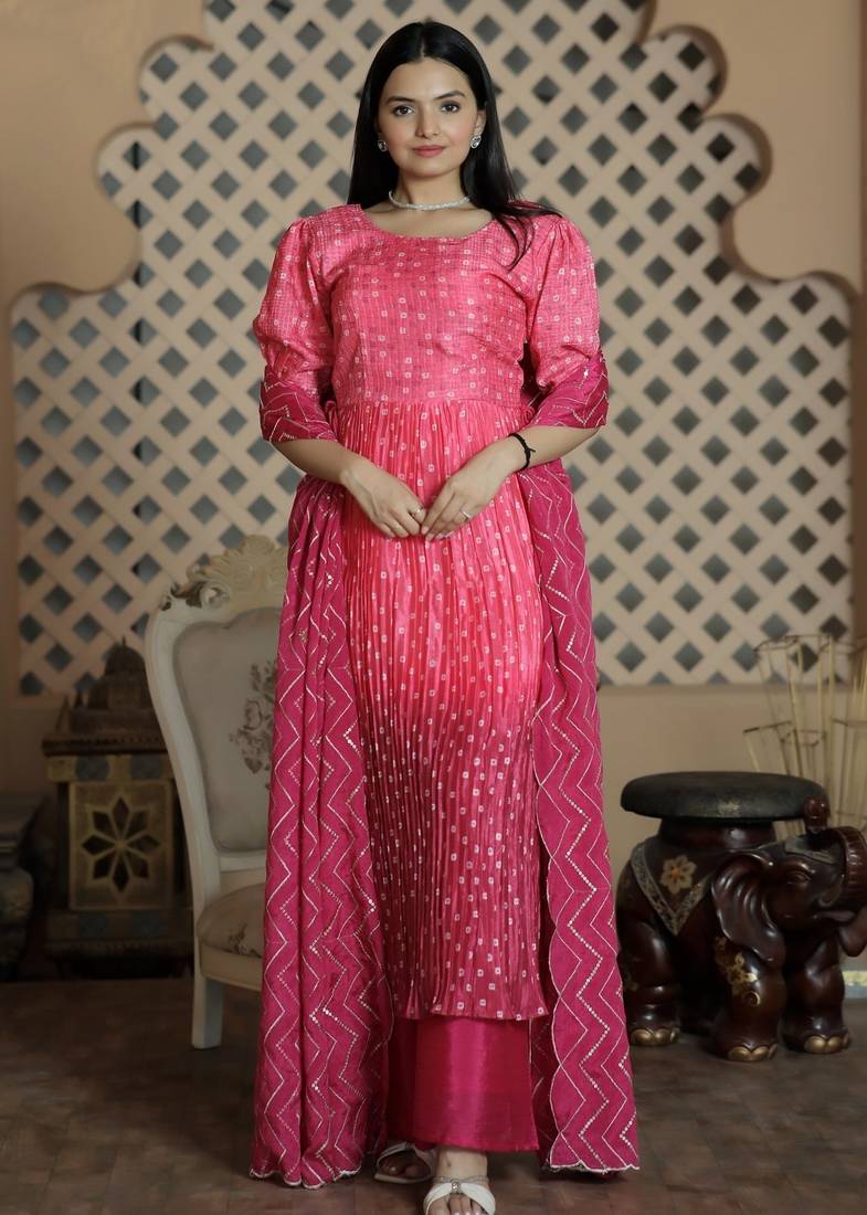 Pink maslin kurta set with chinnon bottom & embroidered dupatta – elegant everyday & festive wear stitched