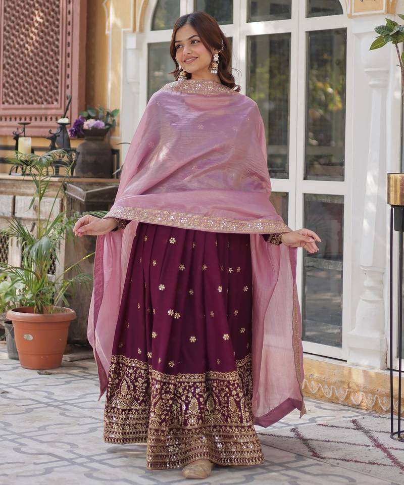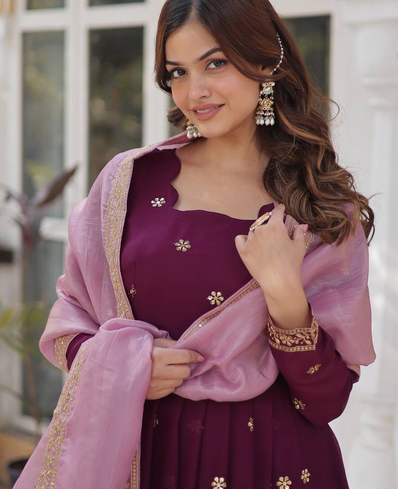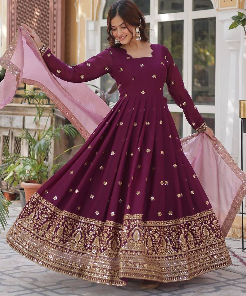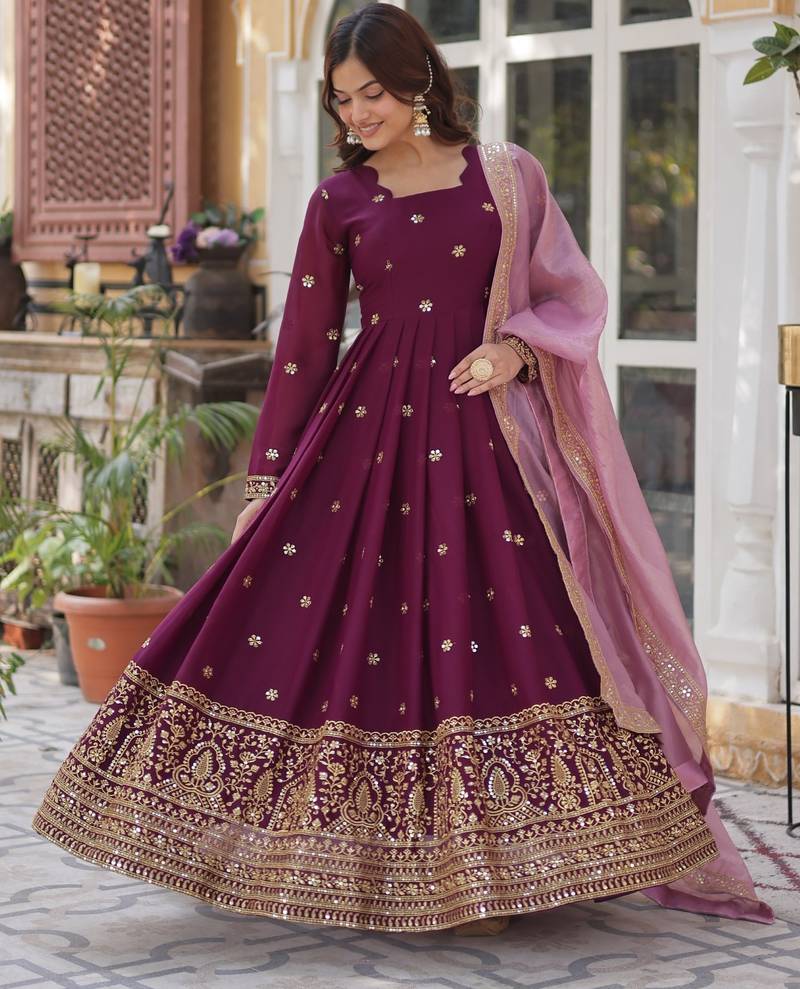 | Product Description | A Stunning Pink Designer Gown Crafted In Luxurious Star Georgette Fabric, Showcasing Rich Zari And Sequins Embroidery For A Premium Festive Look.