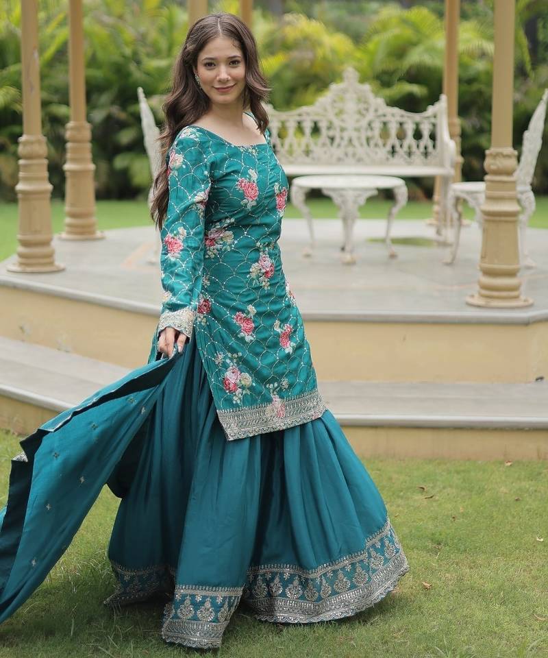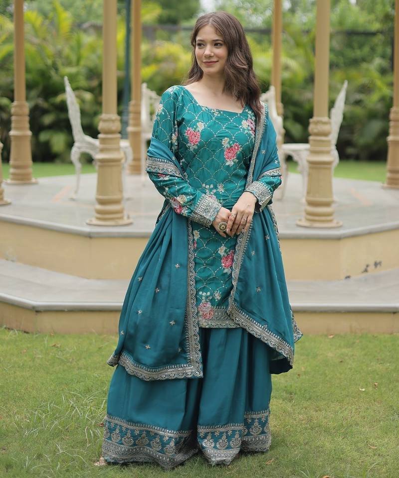 Package details : 1 Kurat/1 Plazzo/1 Dupatta