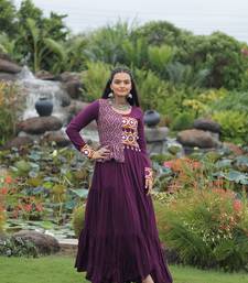 Reyon embroidered & printed semi-stitched gown wine | up to size 42 | 56" length semi stitched