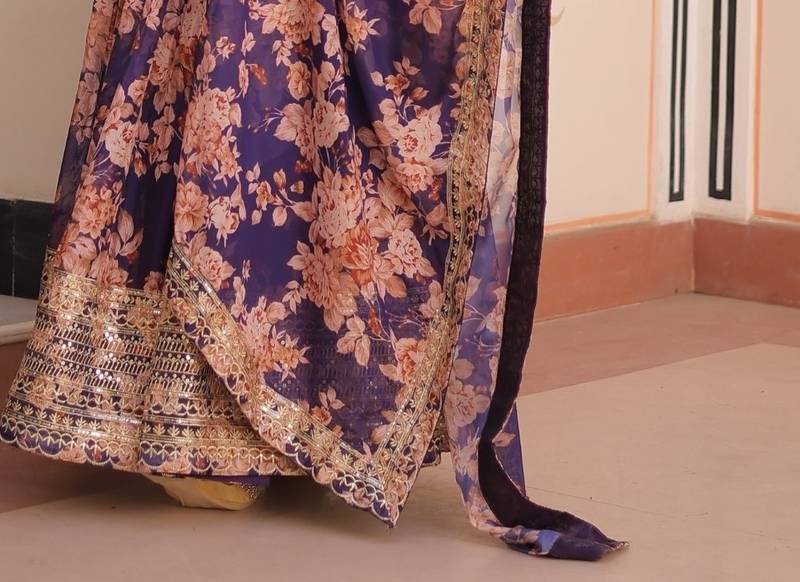 | • | Dupatta | : | Color- Purple / Fabric- Satin |
