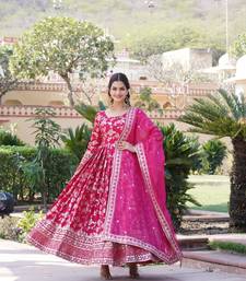 | Product Description | Elegance Meets Luxury With This Exquisite Pink Gown From The Premium Collection. Crafted Using Viscose Diable Jacquard, The Gown Offers A Rich, Textured Feel With A Premium Drape That Enhances Its Royal Appearance. The Fabric’s Natural Shine Combined With Heavy Embroidered And Sequins Work Creates An Elevated Festive Look, Perfect For Upscale Celebrations. Paired With A Beautifully Matching Russian Silk Dupatta, Known For Its Ultra Soft, Smooth And Premium Finish, This Set Offers A Complete High Fashion Look. With A Full Stitched Structure, 56 Inch Length And 2.3 Meters Flair, It Delivers A Graceful Silhouette That Flatters Effortlessly. |