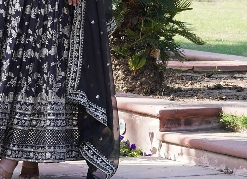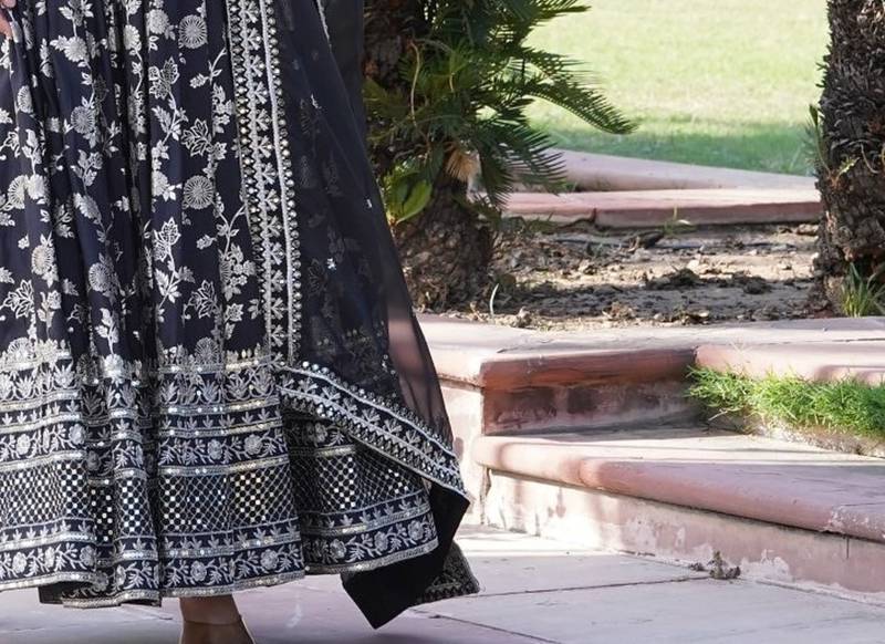 The Gown Is Beautifully Adorned With Heavy Embroidered And Sequins Detailing, Adding A Refined Sparkle That Enhances The Richness Of Black Without Overpowering It. The Set Includes A Premium Russian Silk Dupatta, Known For Its Soft, Flowy Drape And Elegant Sheen, Completing The Look With Sophistication.