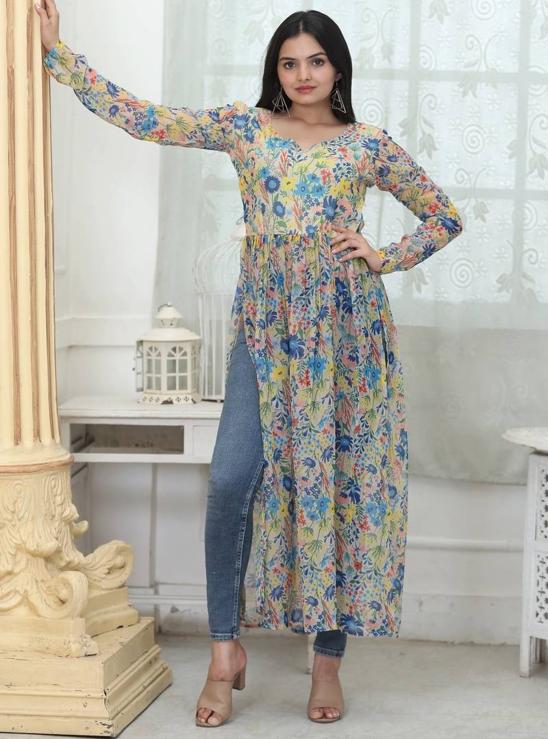 White fox georgette printed kurta – lightweight, stylish & perfect for daily wear stitched