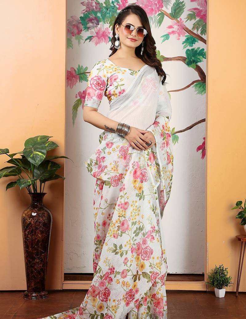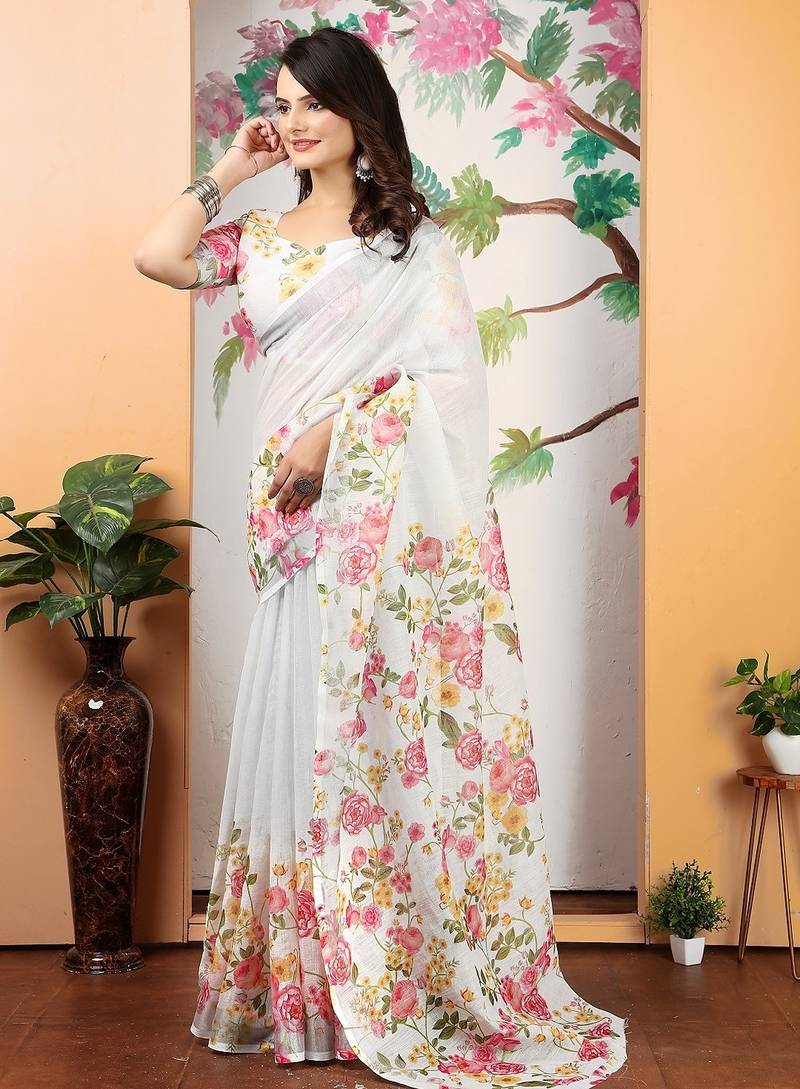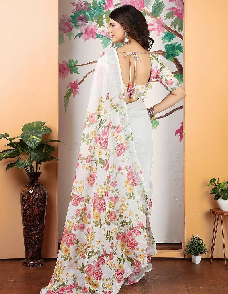| Product Name | White Printed Pure Cotton White Saree With Blouse | |